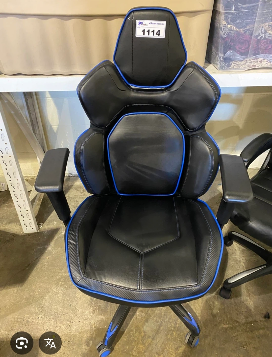 21Selling a black gaming chair with blue accents. It's in good condition and ready for a new home! This ergonomic gaming and office chair features a high back and comfortable support, perfect for long hours of gaming or working. The chair is in like new condition, it functions perfectly. It's designed with blue accents and a sleek, modern look. Additional features include: * Adjustable height * 360-degree swivel * Padded armrests * Durable constructiony