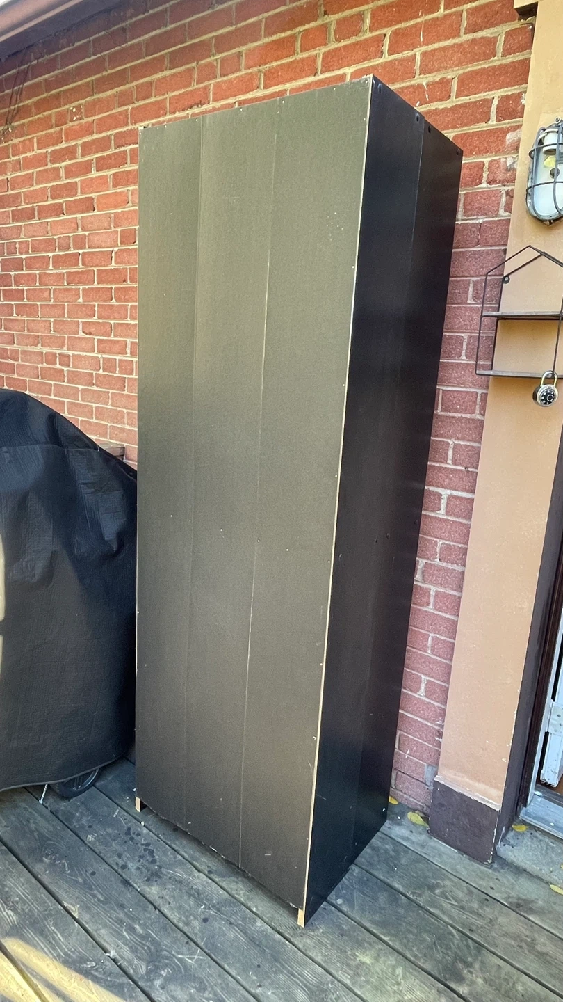 Selling a black bookshelf. It has multiple shelves and is in good condition. Perfect for storing books, bags, or other items! I have 2 of them! $25 each! Or both $40. 25inch W x 10inch D x 73inch H