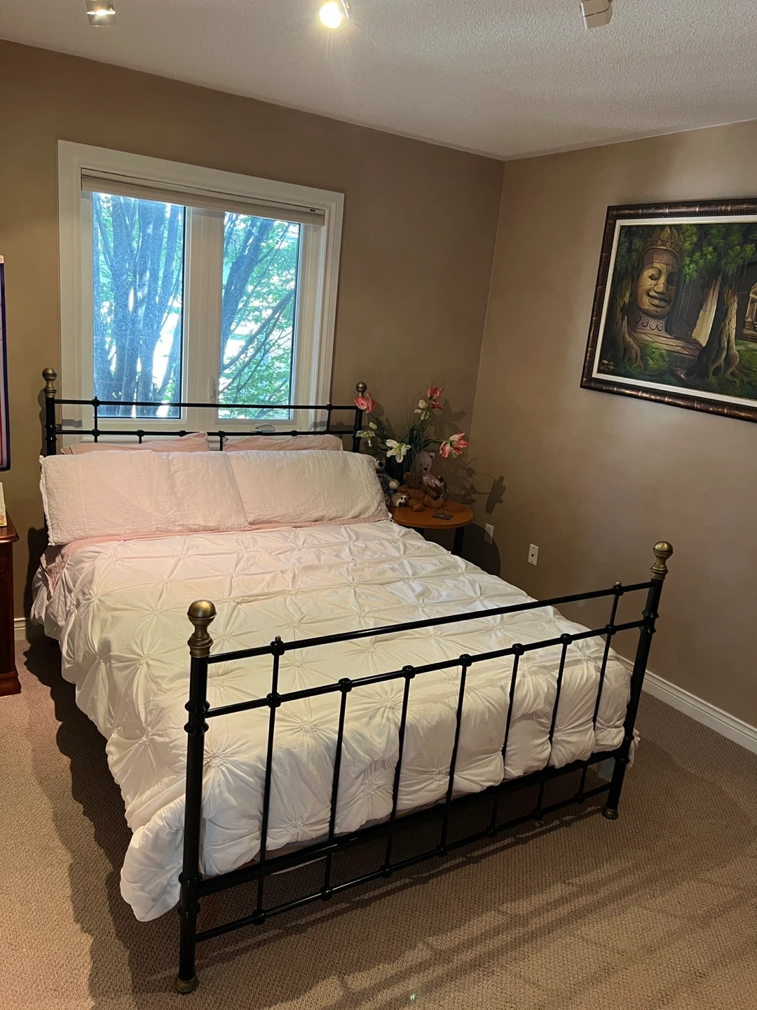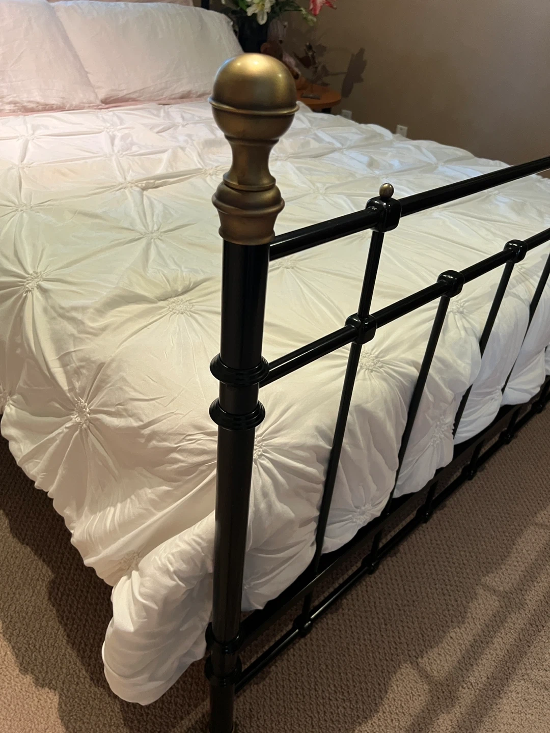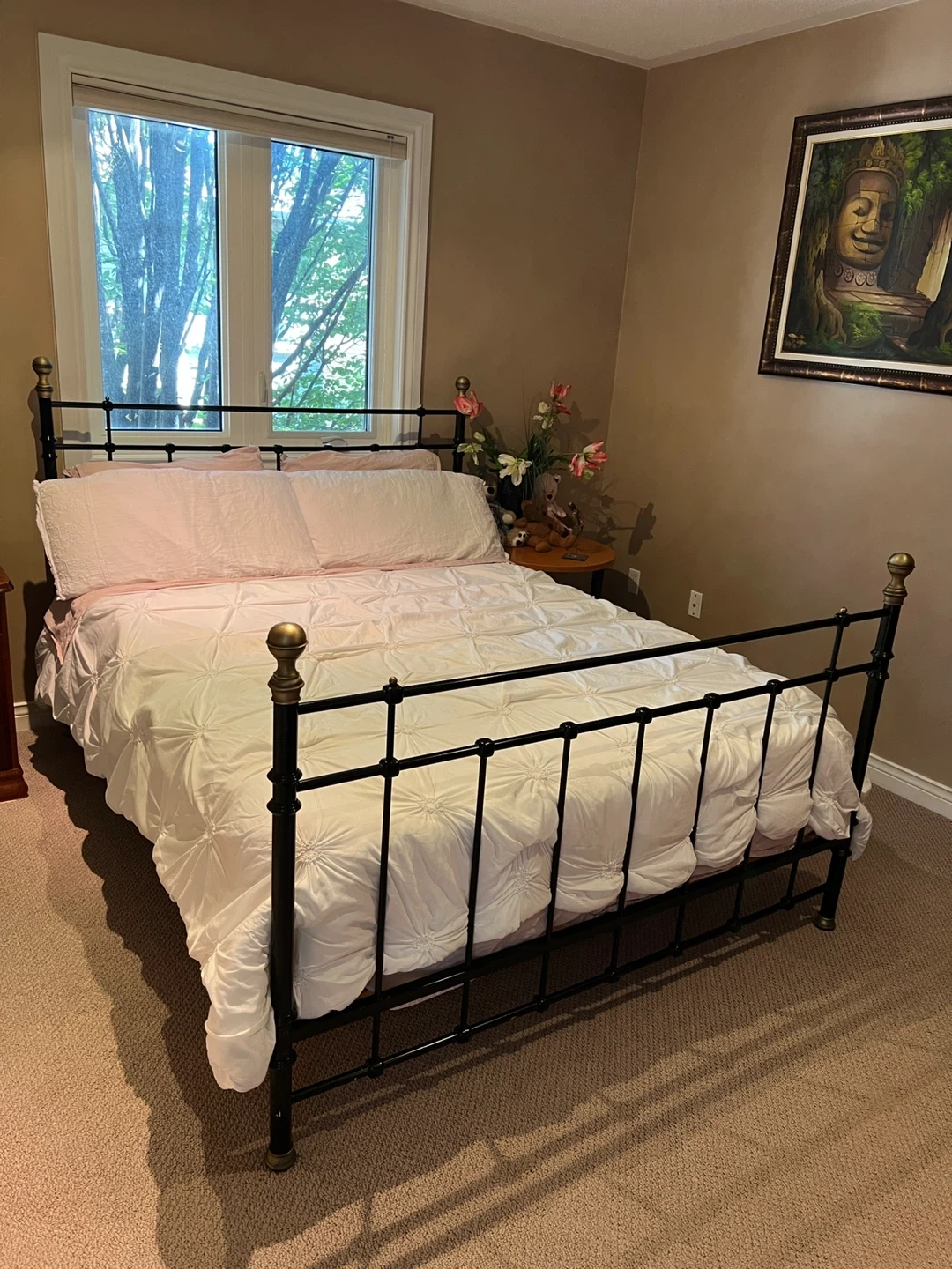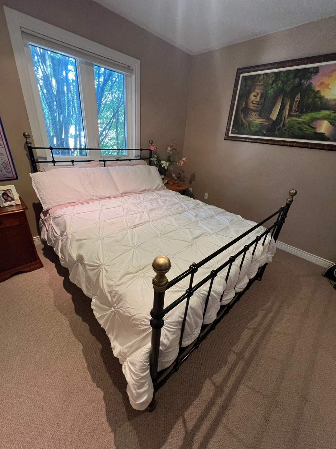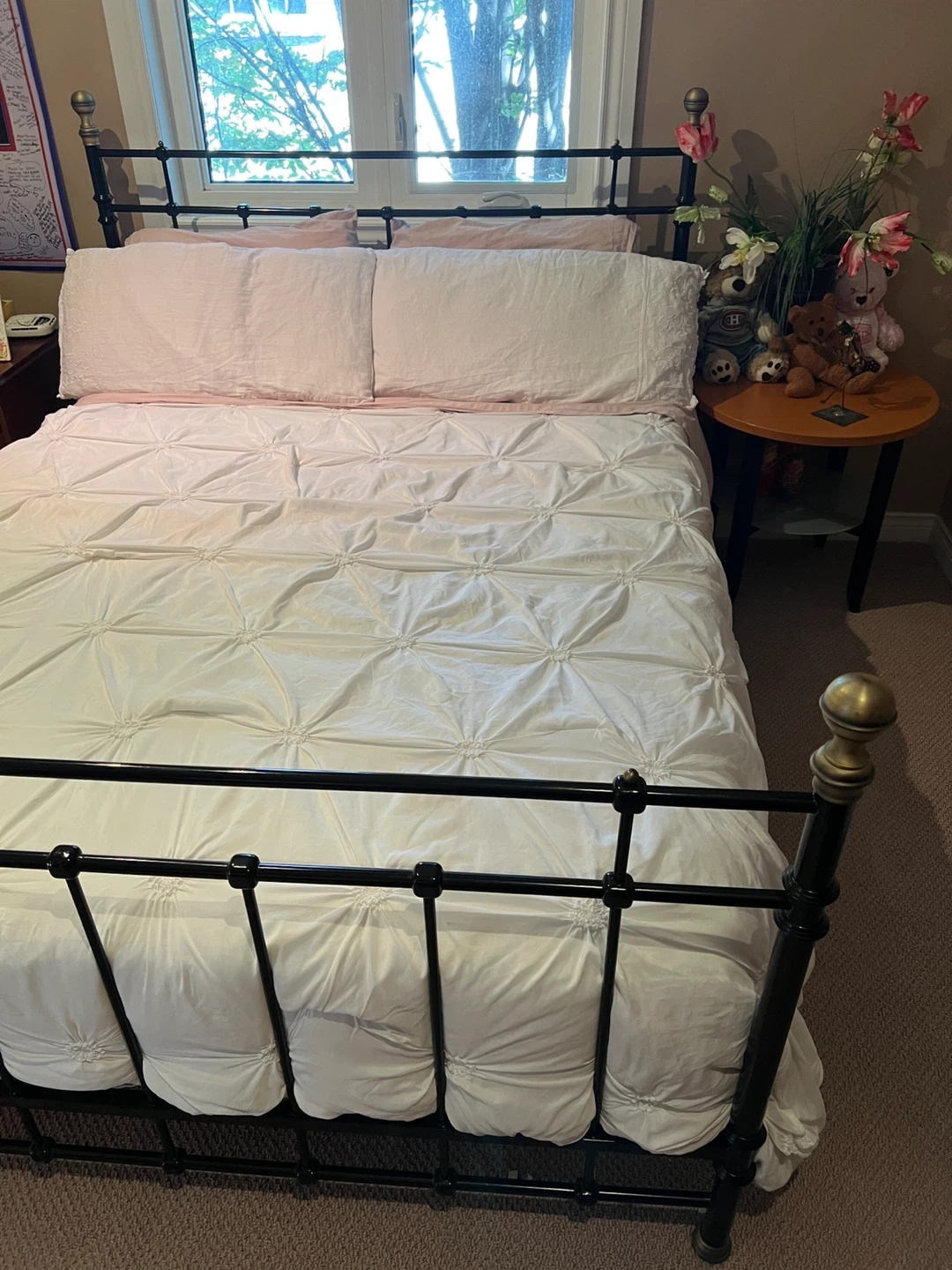 Selling a Queen black metal bed frame. It's in fabulous condition and ready for a new home! The frame has a classic design with brass accents on the posts. Perfect for adding a touch of elegance to any bedroom. Mattress not included. Location: Thornhill - Bathurst & Centre