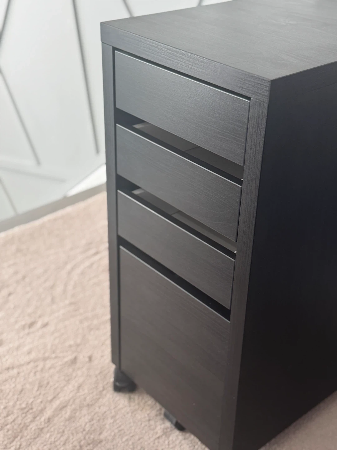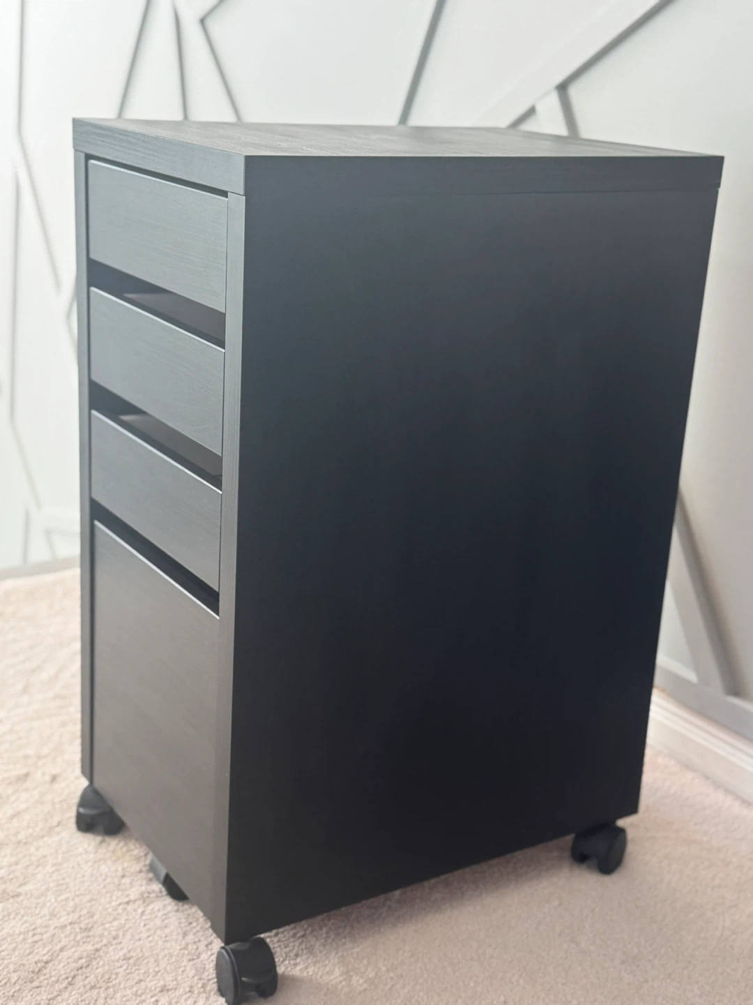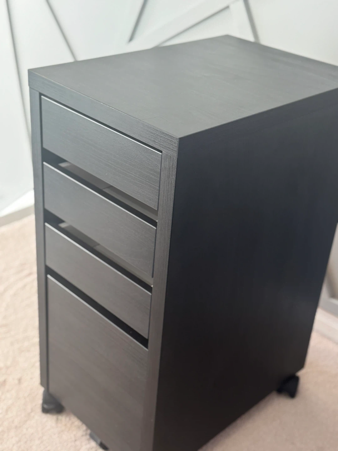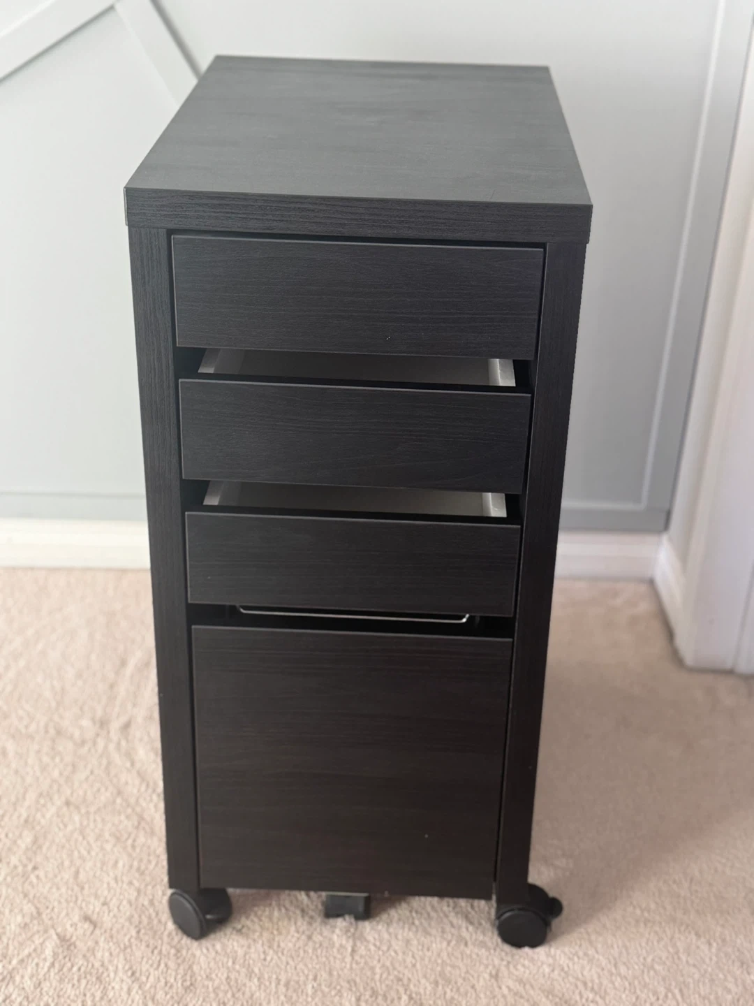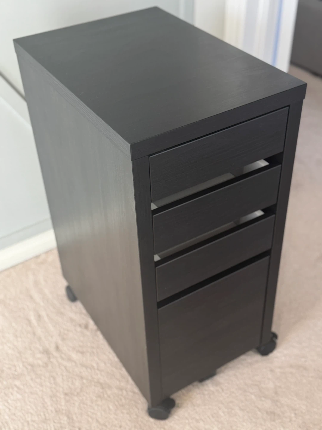 5Looking to declutter your space? I'm selling a handy drawer unit in black-Brown. It's on casters that can also lock when needed, so it's easy to move around. Perfect for an office, craft room, bedroom or anywhere that needs organization!