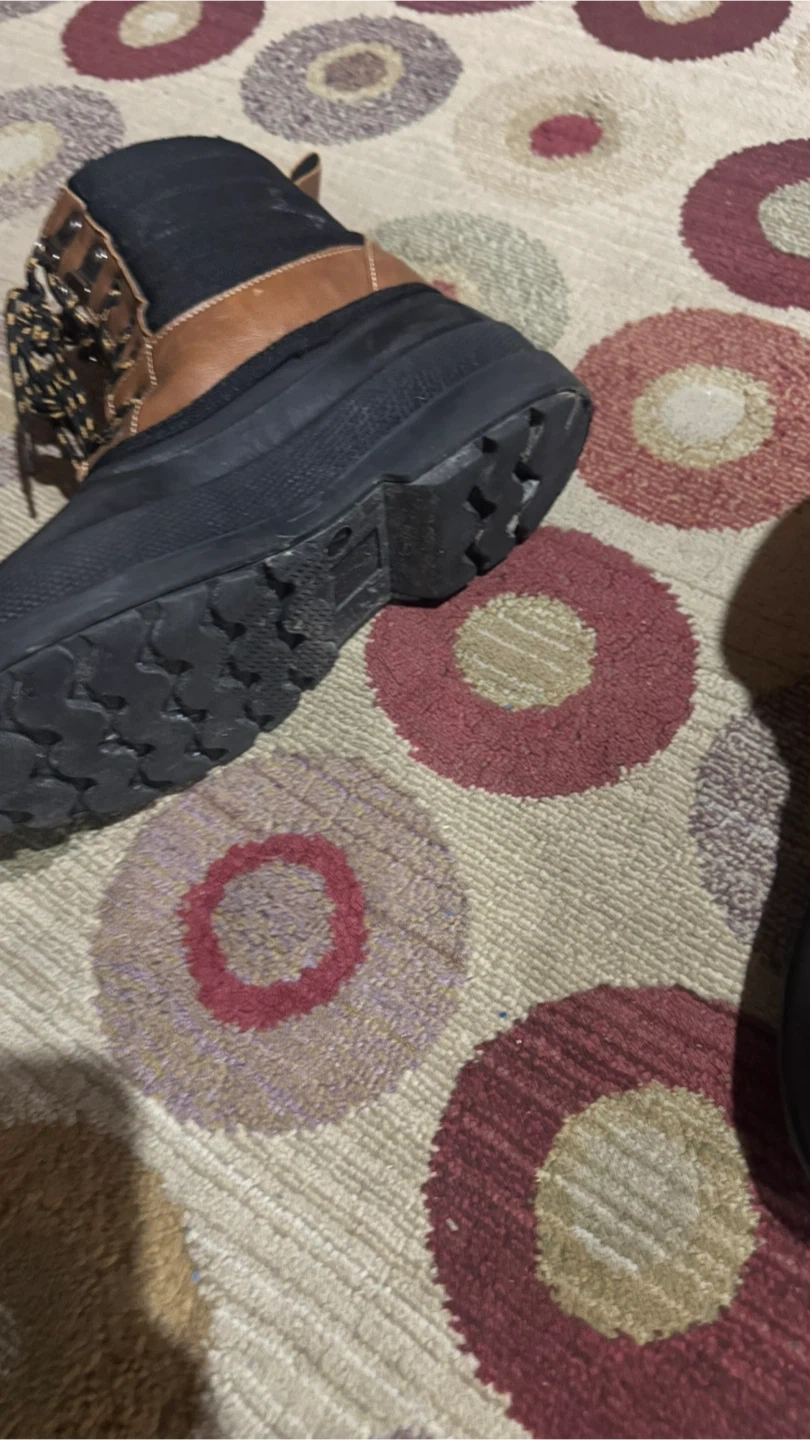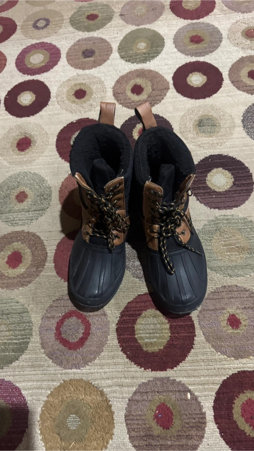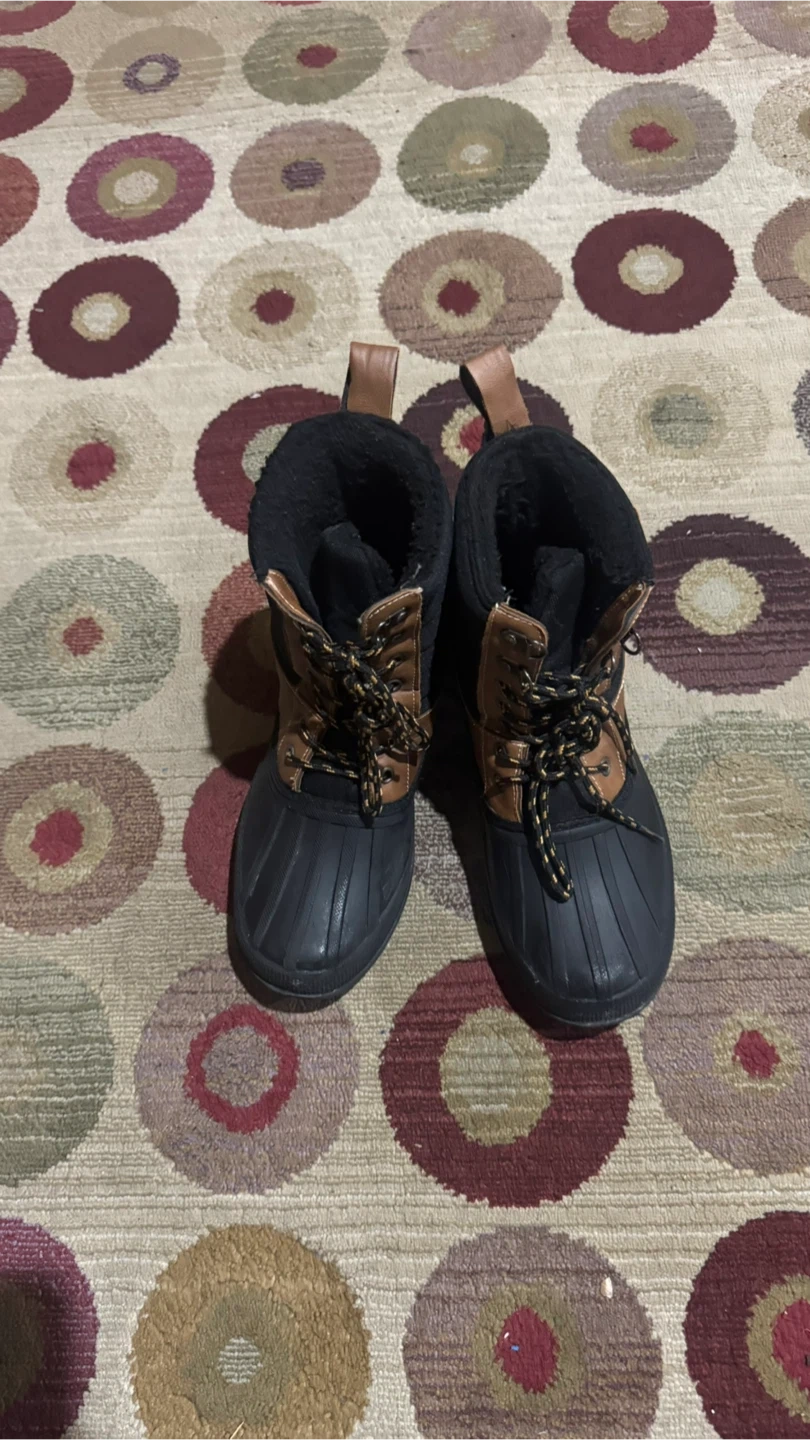 60Selling a pair of duck boots in black and brown. They are in great condition and ready for the winter weather!