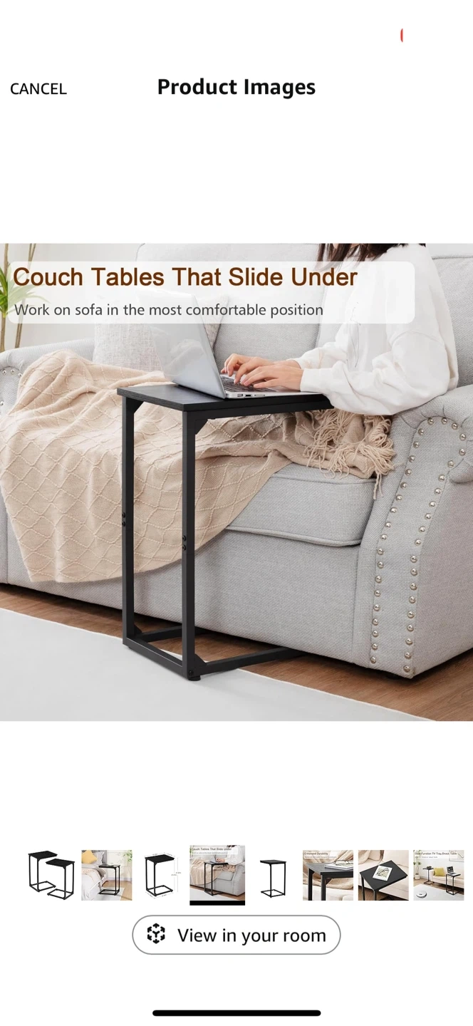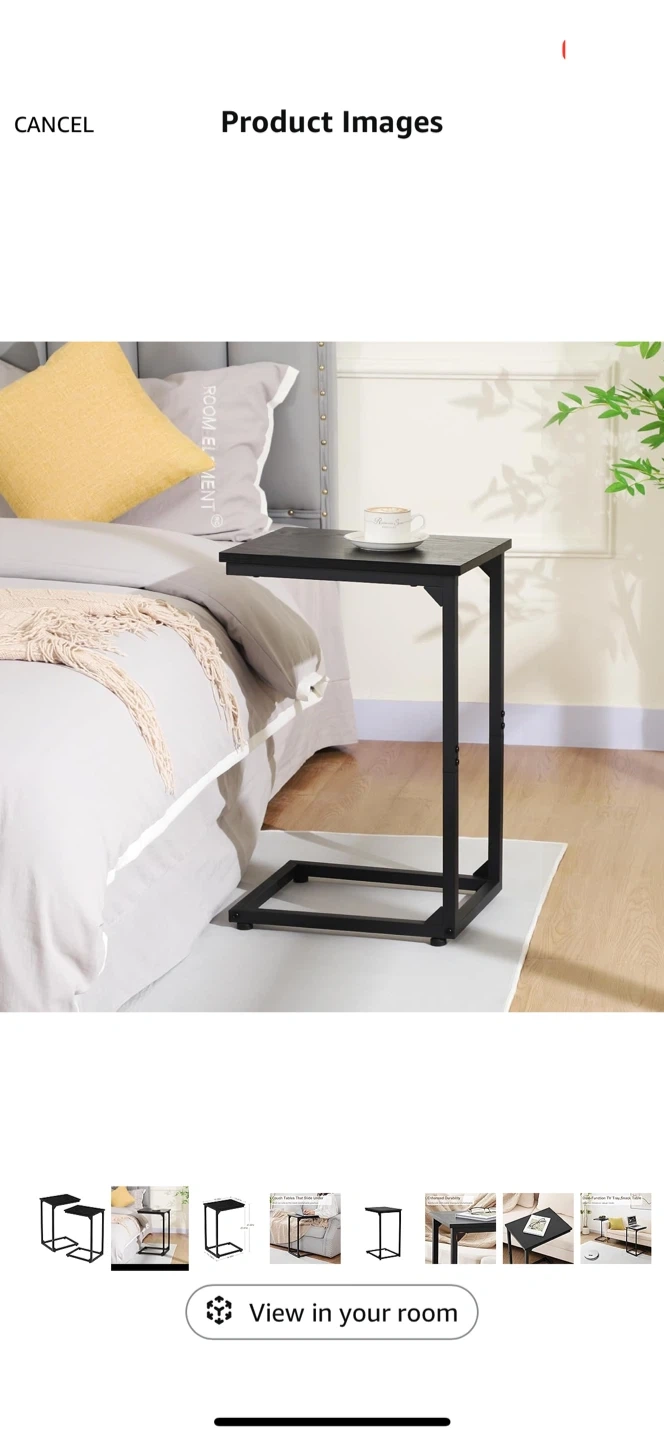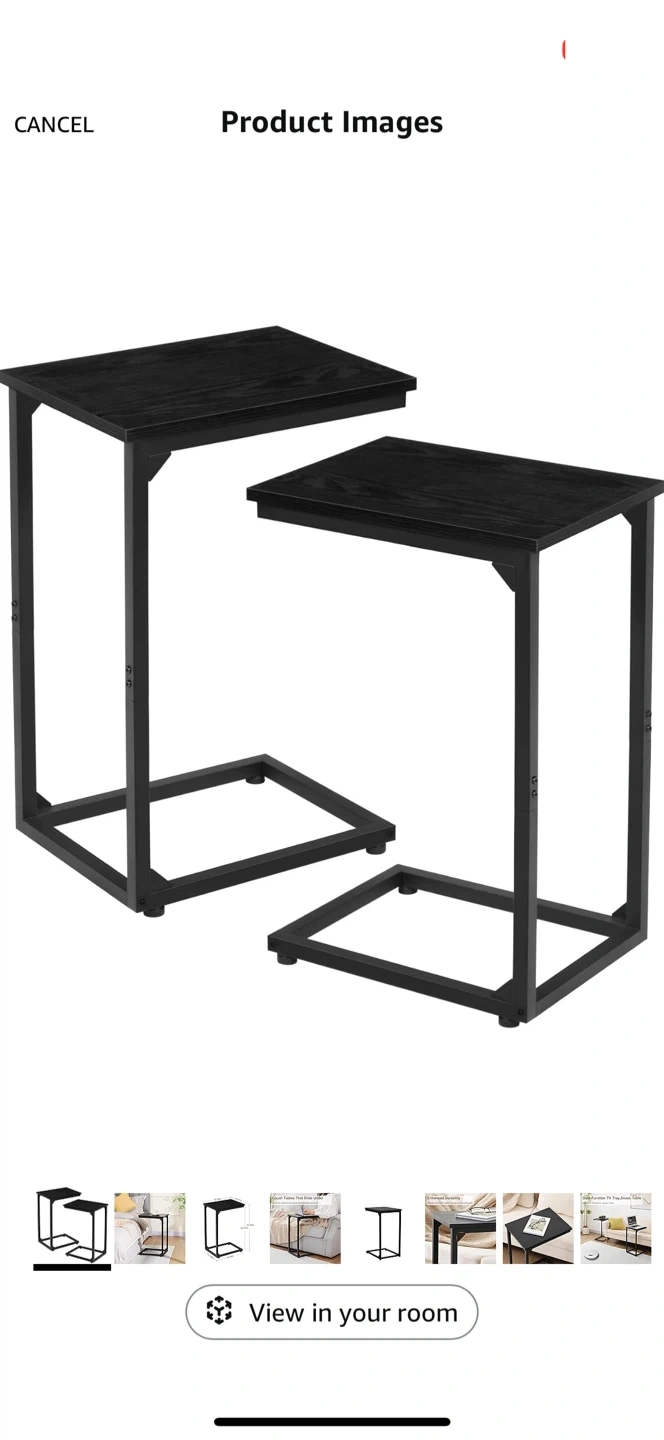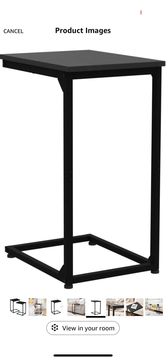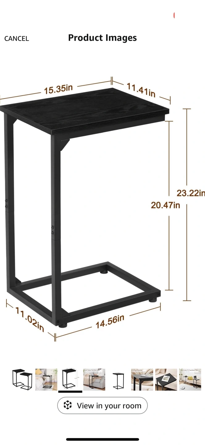 15Looking to sell this handy black C table! It's perfect for sliding under your couch so you can work or relax comfortably. The dimensions are approximately 15.35 inches by 11.41 inches on top, with a height of about 23.22 inches. It's in great shape and ready for a new home!