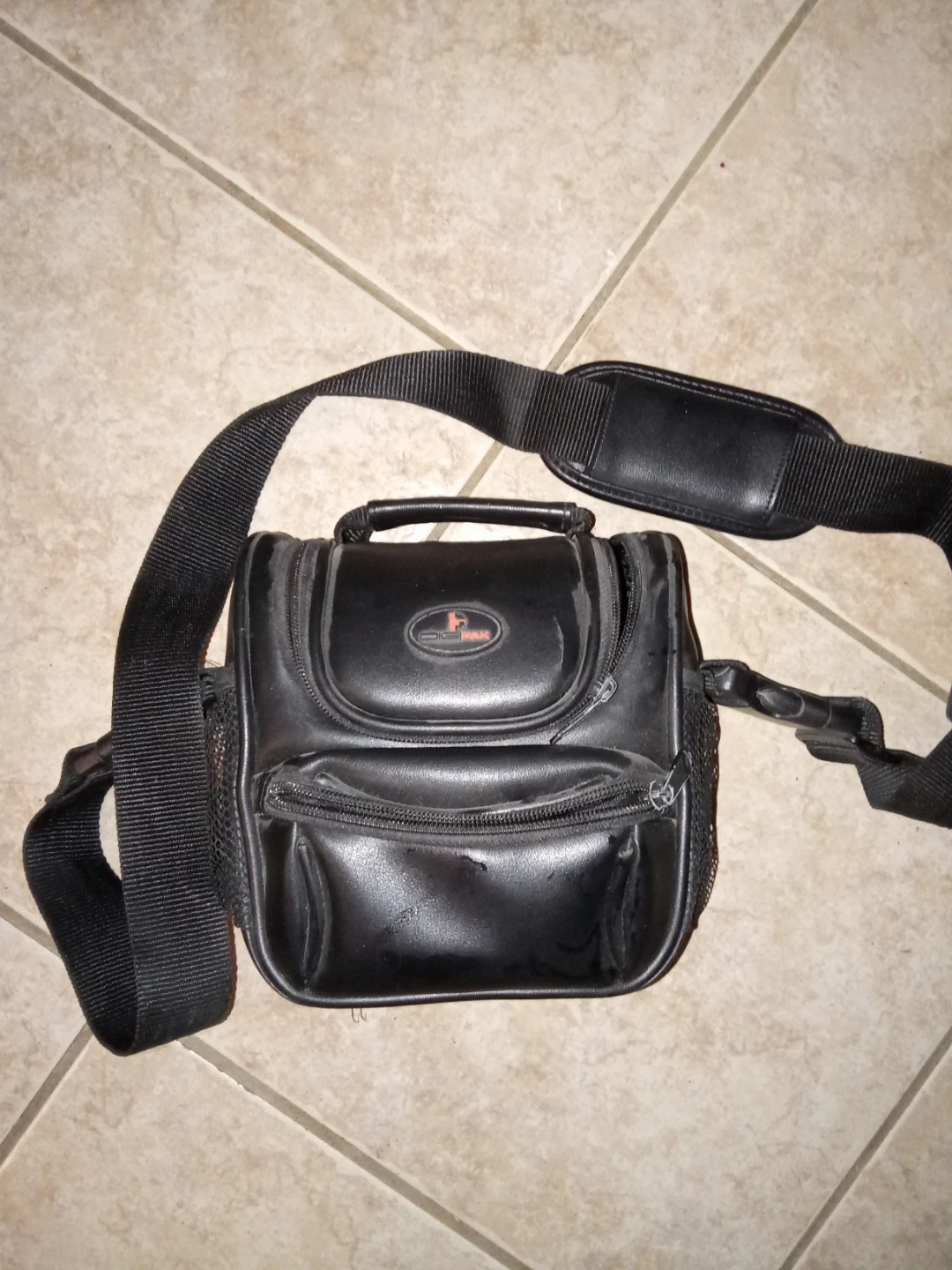 126Here's a black camera bag that's perfect for carrying your camera and accessories! It has a shoulder strap for easy carrying and multiple compartments to keep everything organized