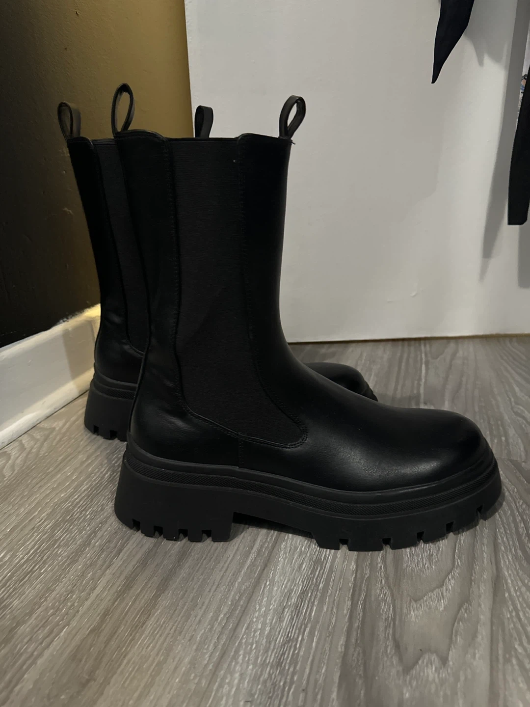 5Selling a pair of black Chelsea boots! They're New and have a cool, chunky sole. Perfect for adding a bit of edge to any outfit!