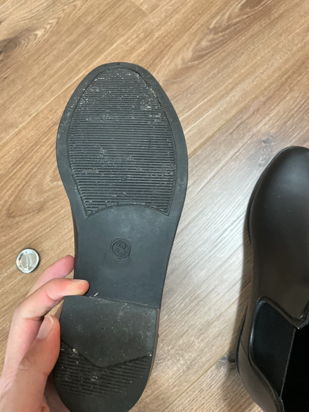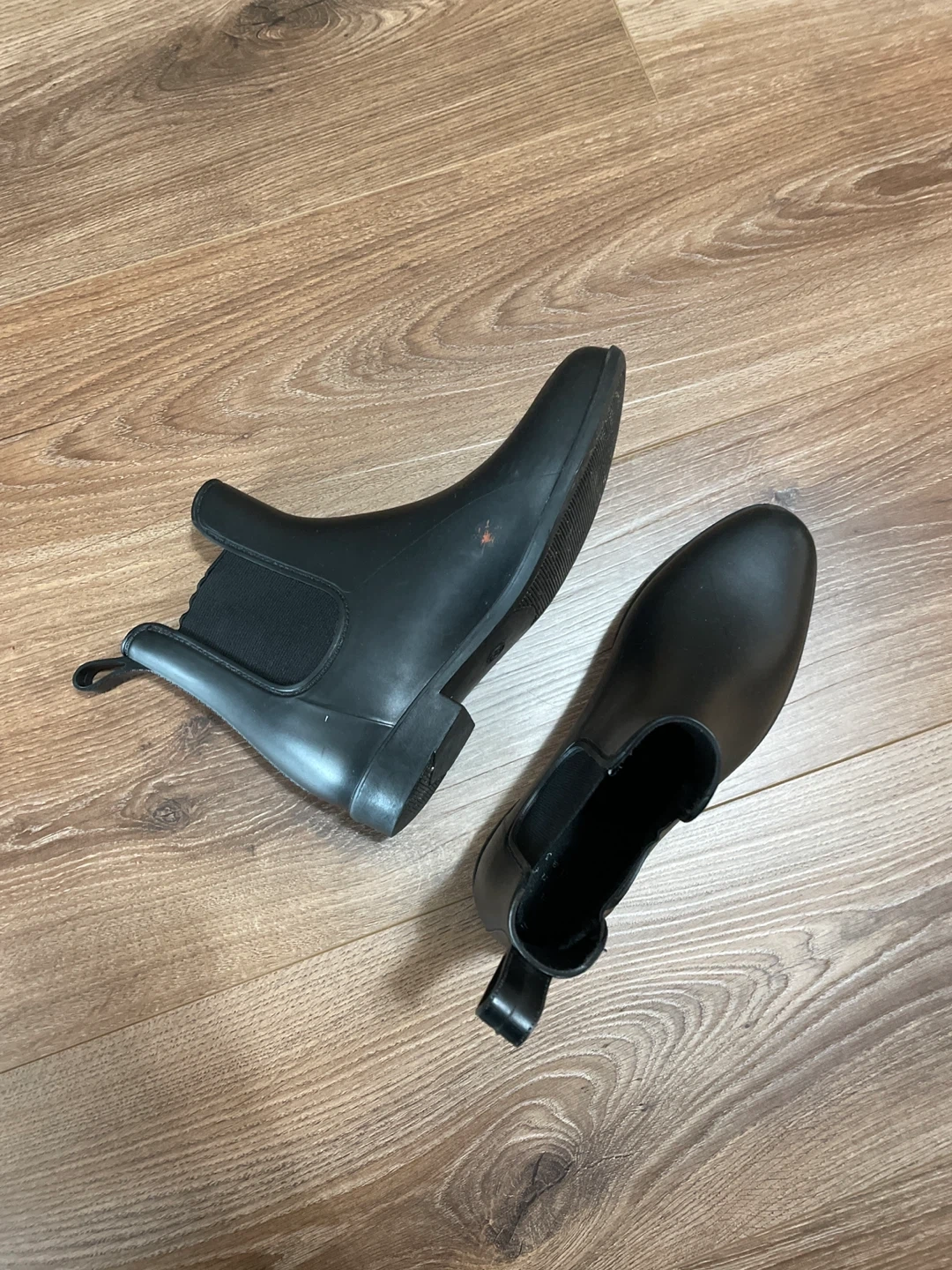 Selling a pair of black Chelsea boots in size 8. They show some signs of wear, as you can see in the photos. Perfect for rainy days or a casual look!