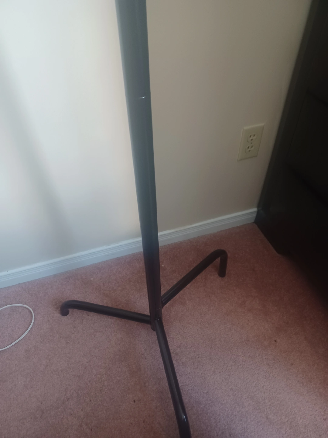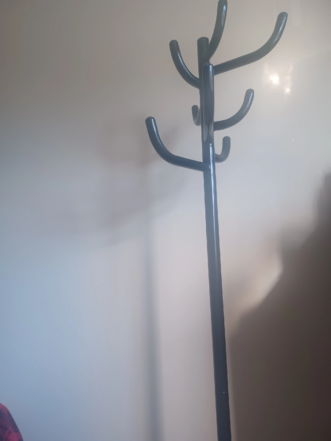 Selling a black coat rack stand! It's perfect for keeping your coats, hats, and scarves organized. It has a sturdy base and multiple hooks for plenty of storage. It's in great condition and ready for a new home