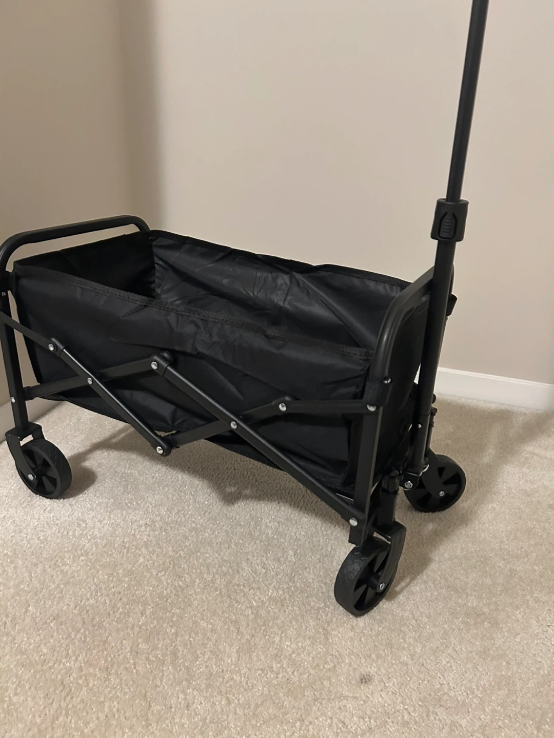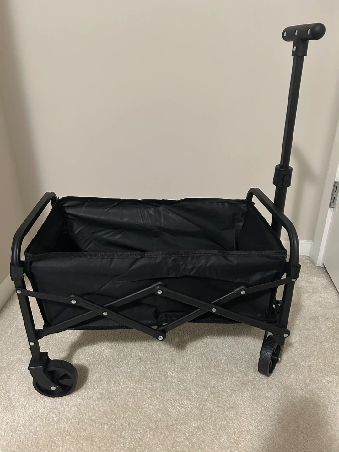 Selling a handy black collapsible utility wagon! It's in great shape and perfect for hauling groceries, camping gear, or anything else you need to move around easily. Folds up for compact storage when not in use, making it super convenient!