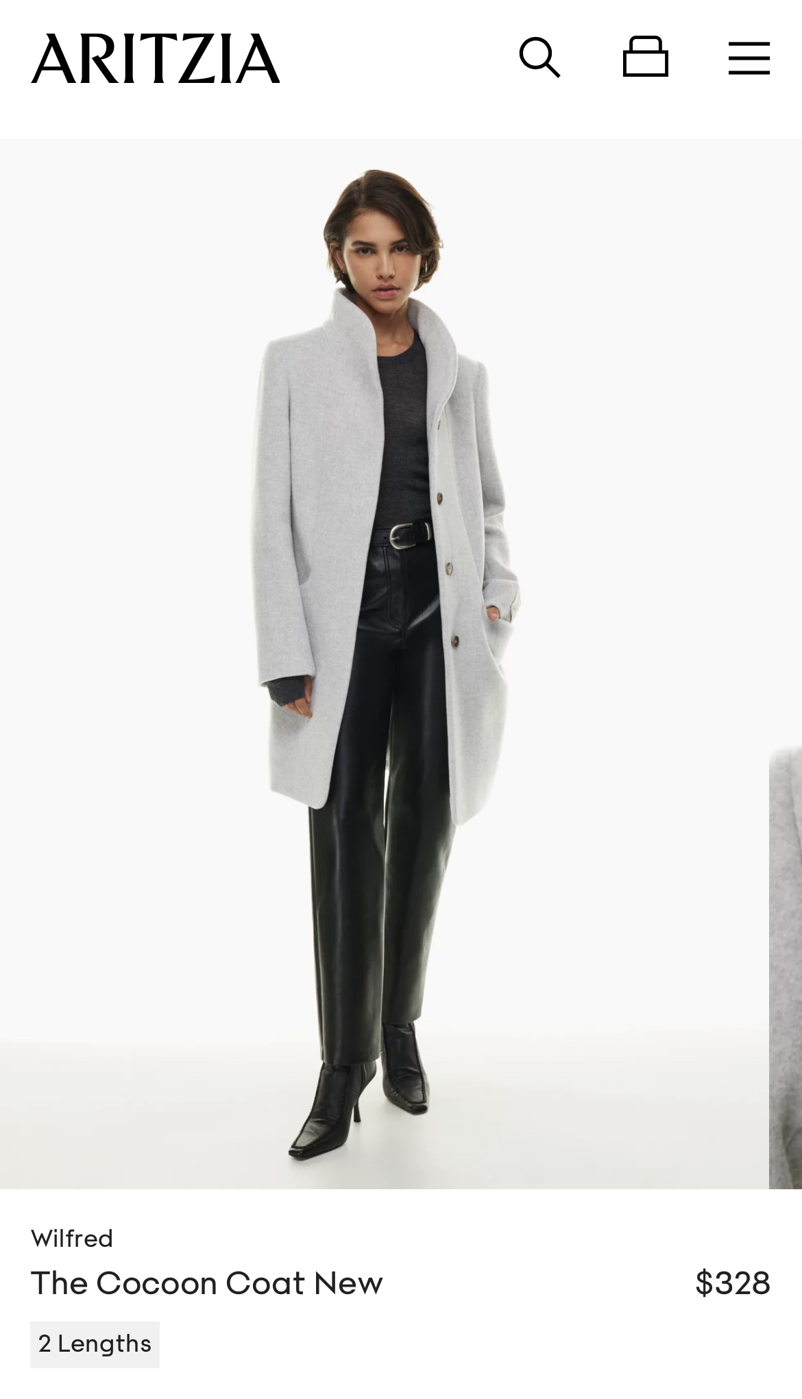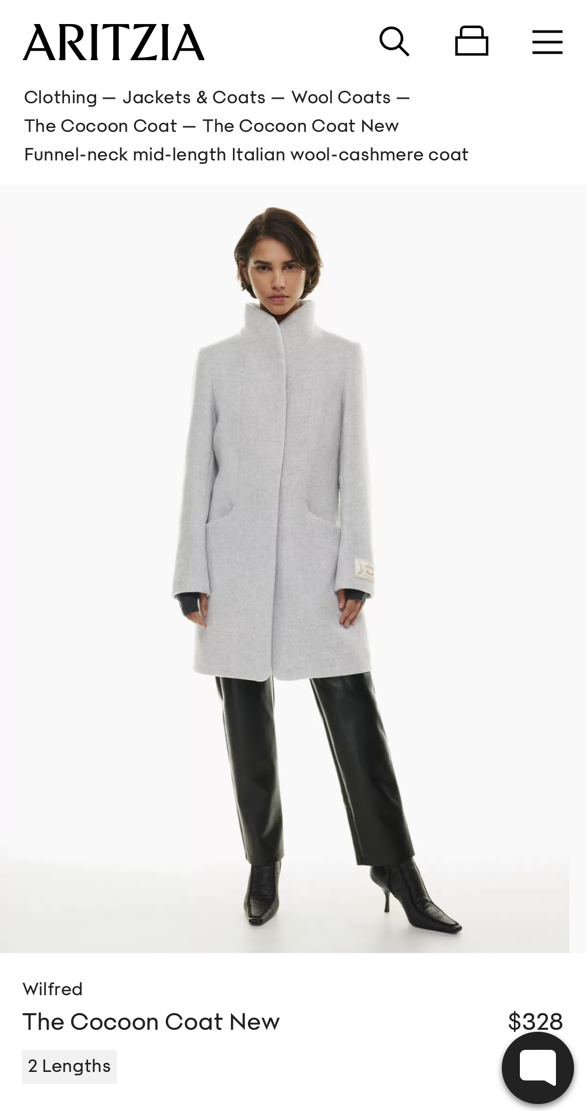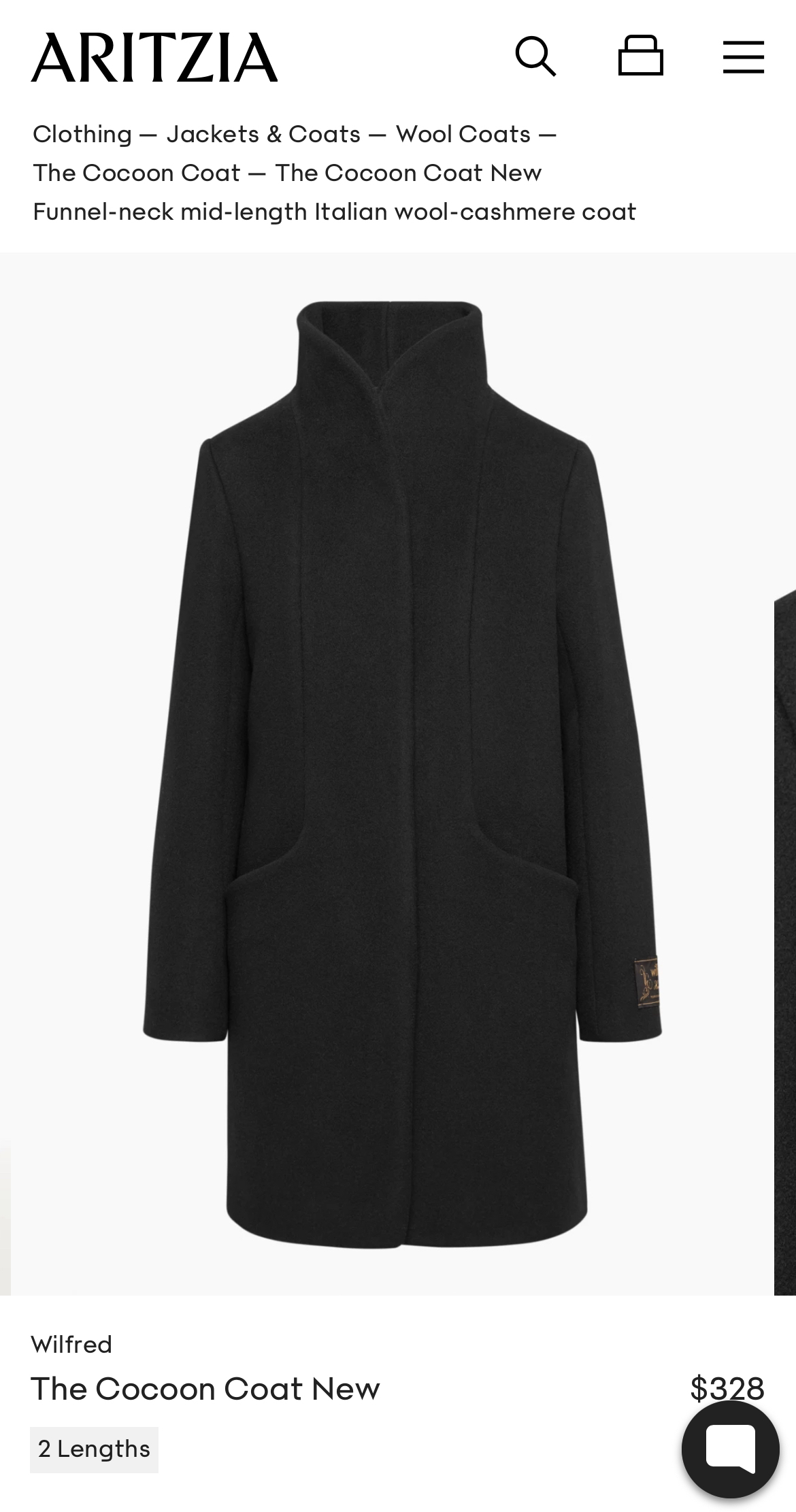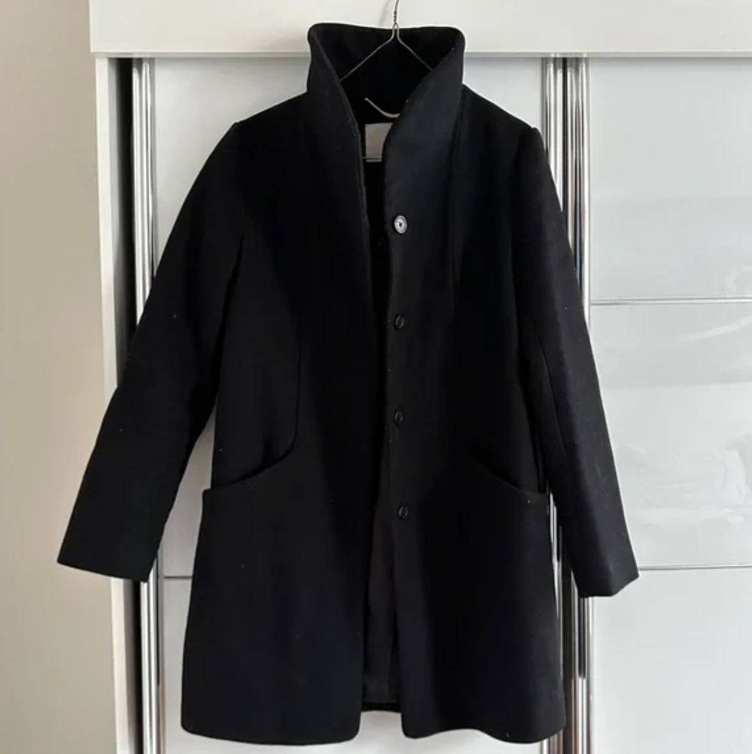 377Aritzia Wilfred The Cocoon Coat Cocooned in Italian wool and cashmere Meticulously crafted to deliver warmth to -20°C / -4°F, this is a streamlined cocoon coat with a funnel neck, hidden placket closure and a vegan chamois interlining for added warmth and wind protection. It’s expertly tailored using Wool Cashmere — exceptionally soft virgin wool and cashmere with a luxurious plush feel. It’s sourced from a premier Italian mill. Original price $370+ after tax Black Color Condition 9/10 Size S