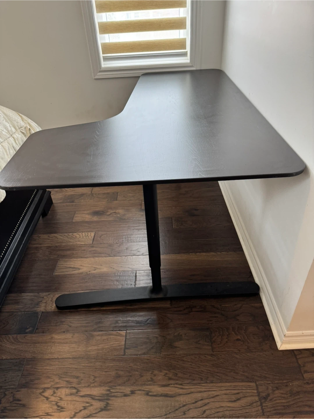 10Selling a sleek black corner desk that's perfect for any home office or study space! It's in great condition and ready to use. The corner design maximizes space, making it ideal for smaller rooms or apartments. It's a sturdy and stylish addition to any workspace