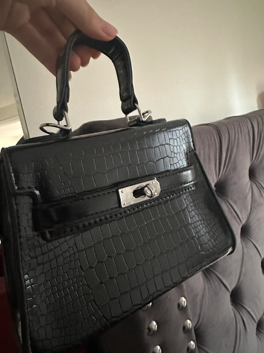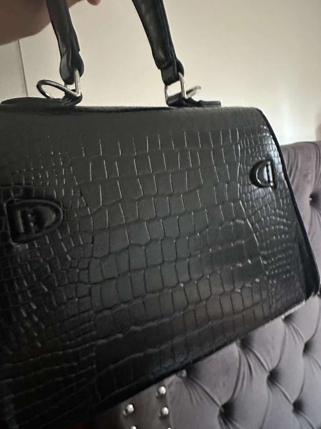 83Selling a stylish black handbag with a crocodile-style texture! It's in great condition and perfect for adding a touch of elegance to any outfit
