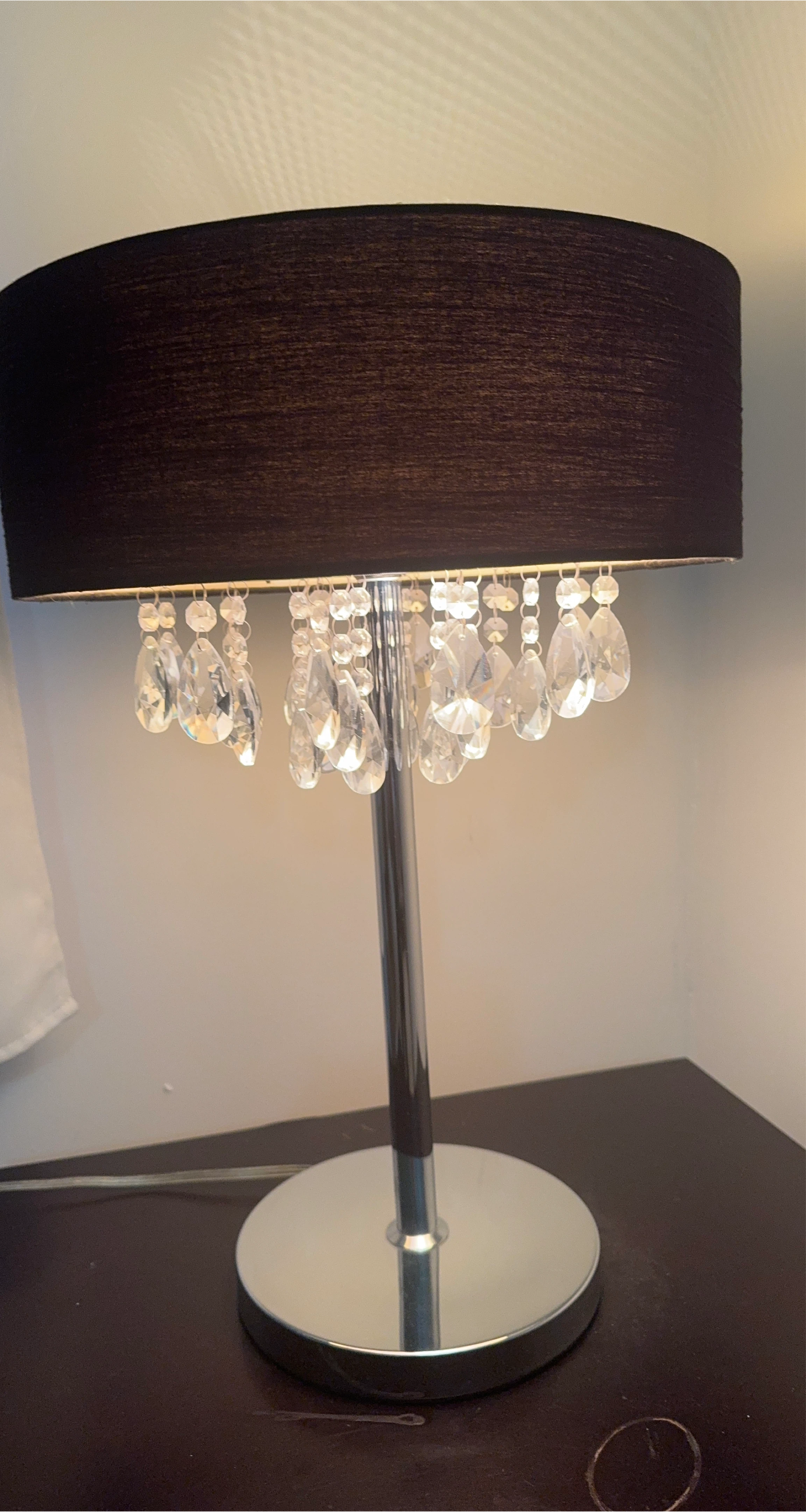 60Add a touch of elegance to your space with this beautiful table lamp! It features a sleek black shade and lovely crystal accents that catch the light beautifully. Perfect for a bedside table, desk, or living room side table to add a warm glow and stylish touch to any room
