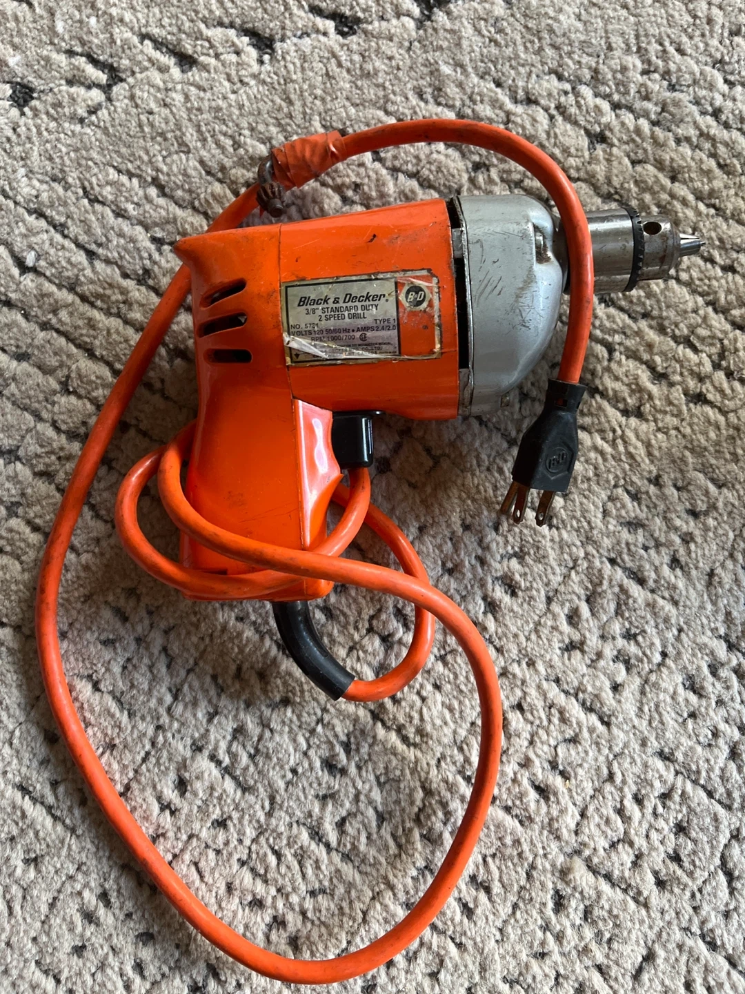 Selling a Black & Decker 3/8" Standard Duty Drill. It's an older model, but still works! It's a Type 1 drill, rated for 115V 50/60 Hz. Please see photos for condition