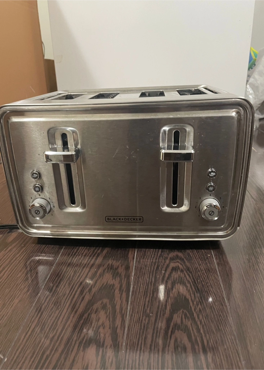 Selling a Black+Decker 4-slice toaster. It's in good working condition and ready for a new home. Perfect for making toast for the whole family!