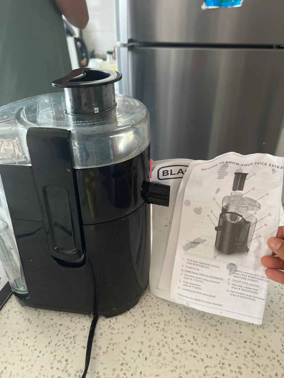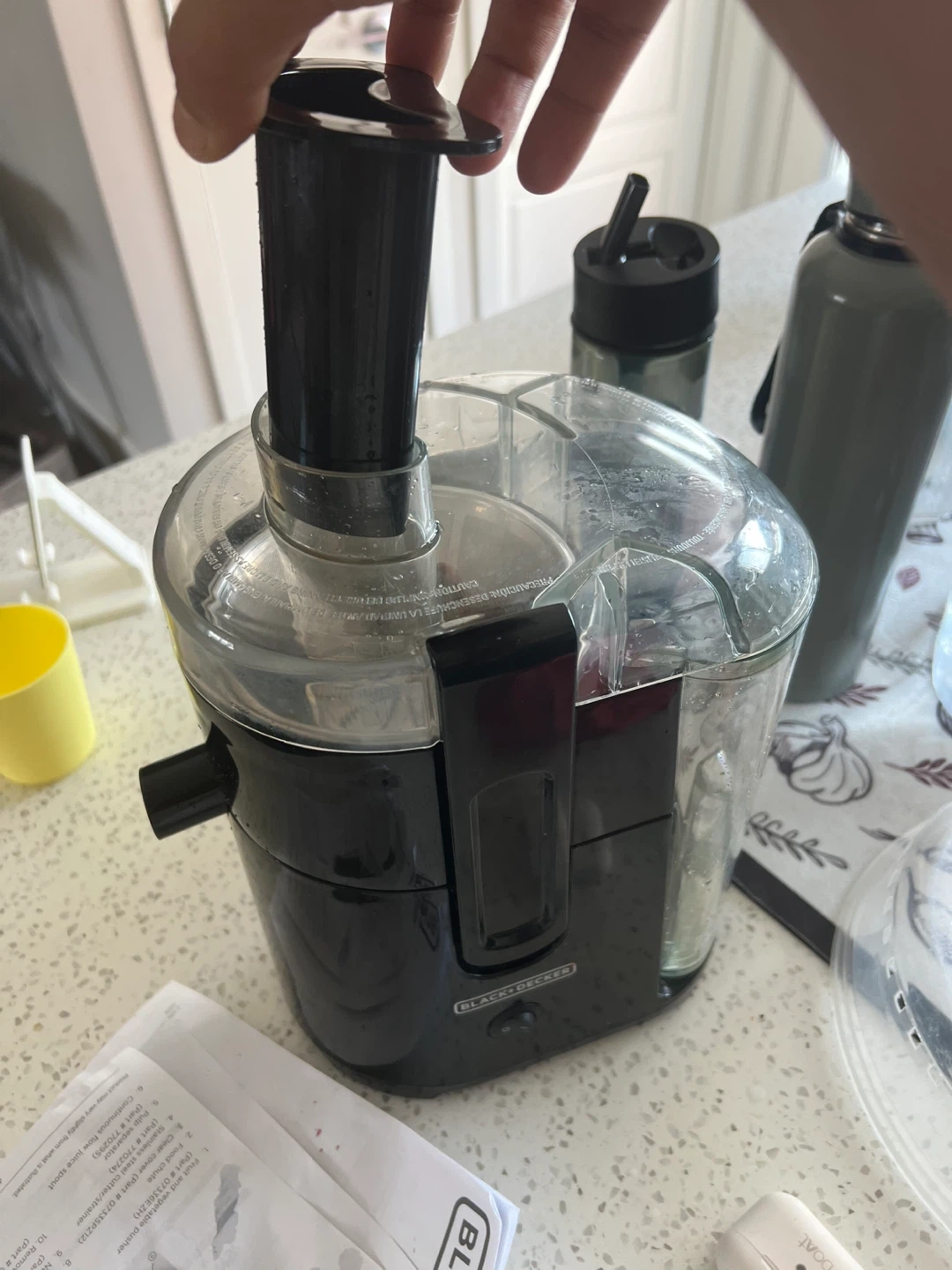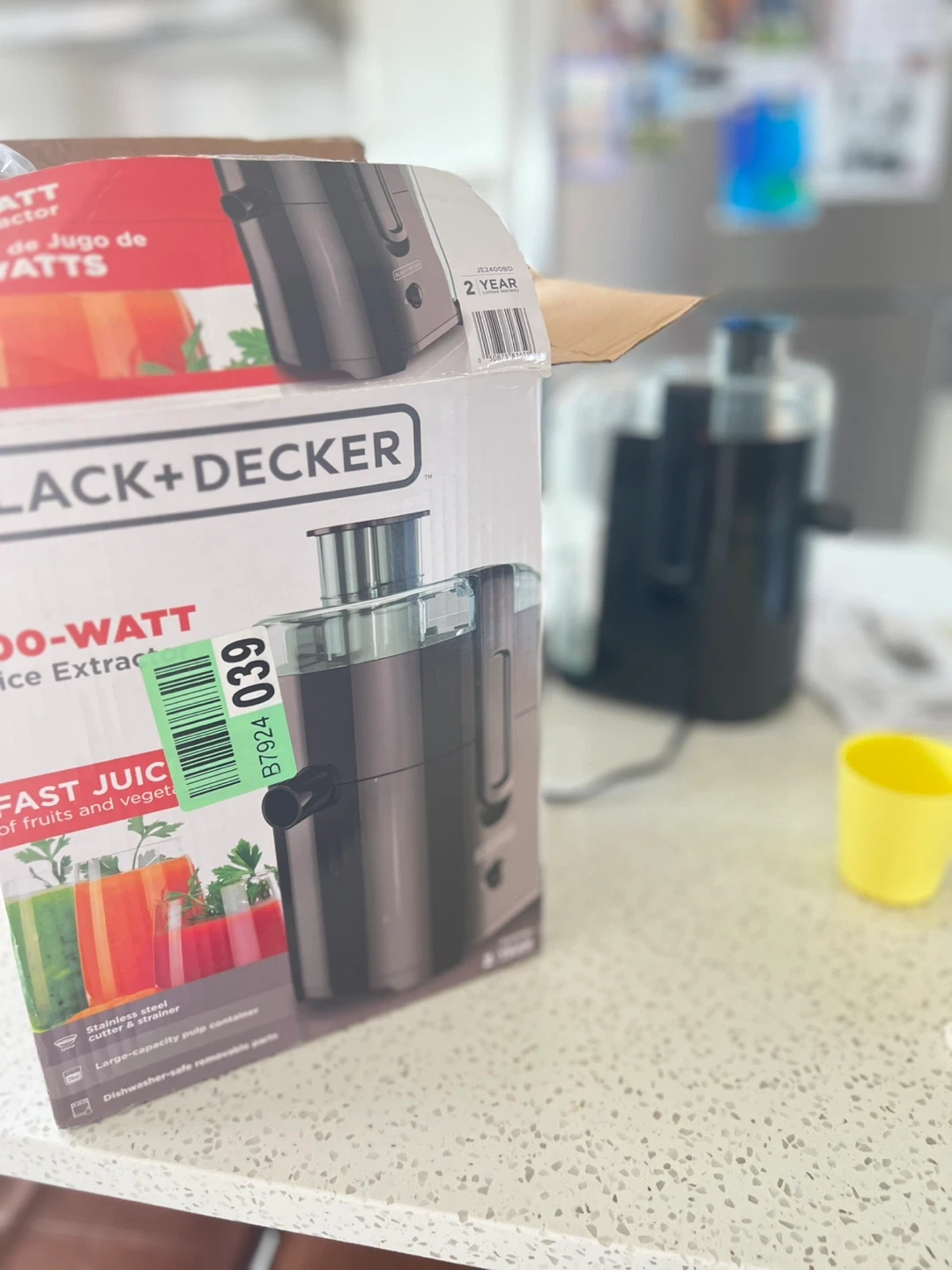 Selling a Black+Decker 400-Watt Juice Extractor! It's great for making juice from your favourite fruits and vegetables. It features a stainless steel cutting blade and strainer, plus large-capacity removable parts. The box is included!
