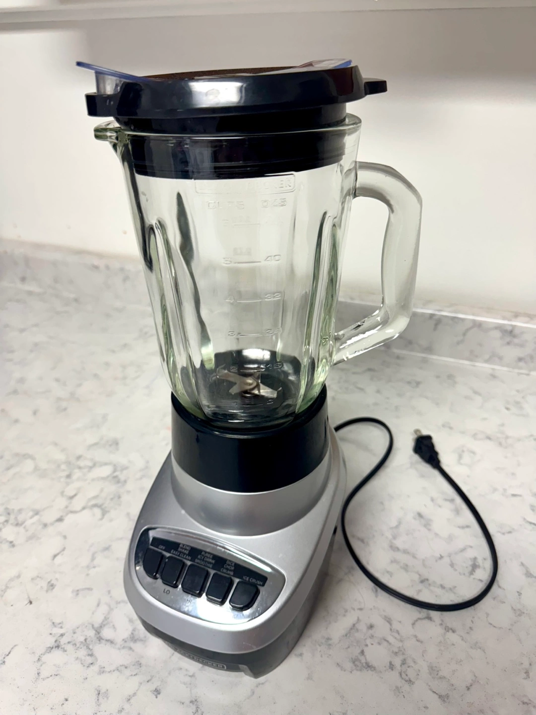 76Selling a Black+Decker blender. It has multiple settings including puree, smoothie, chop, and ice crush