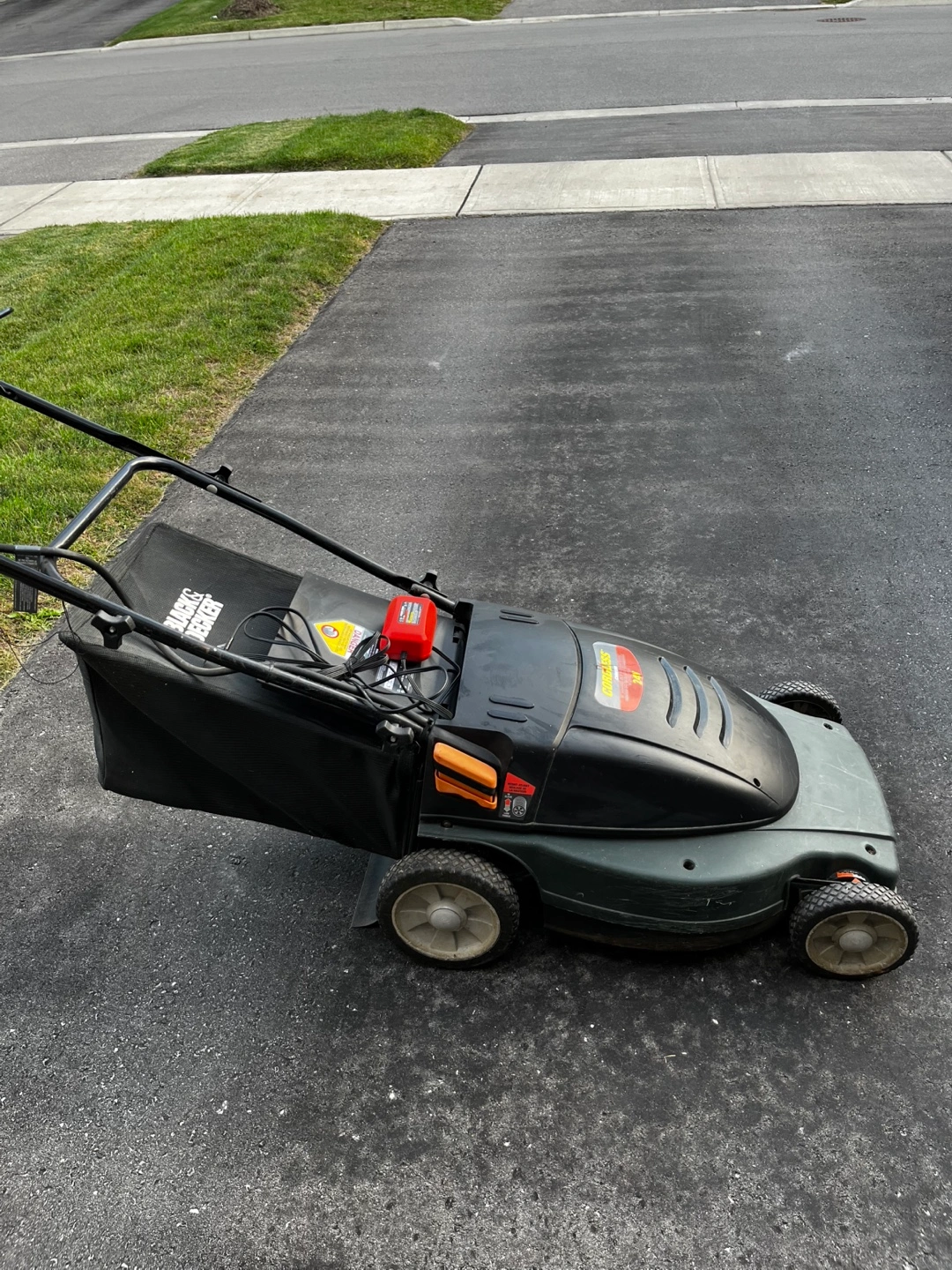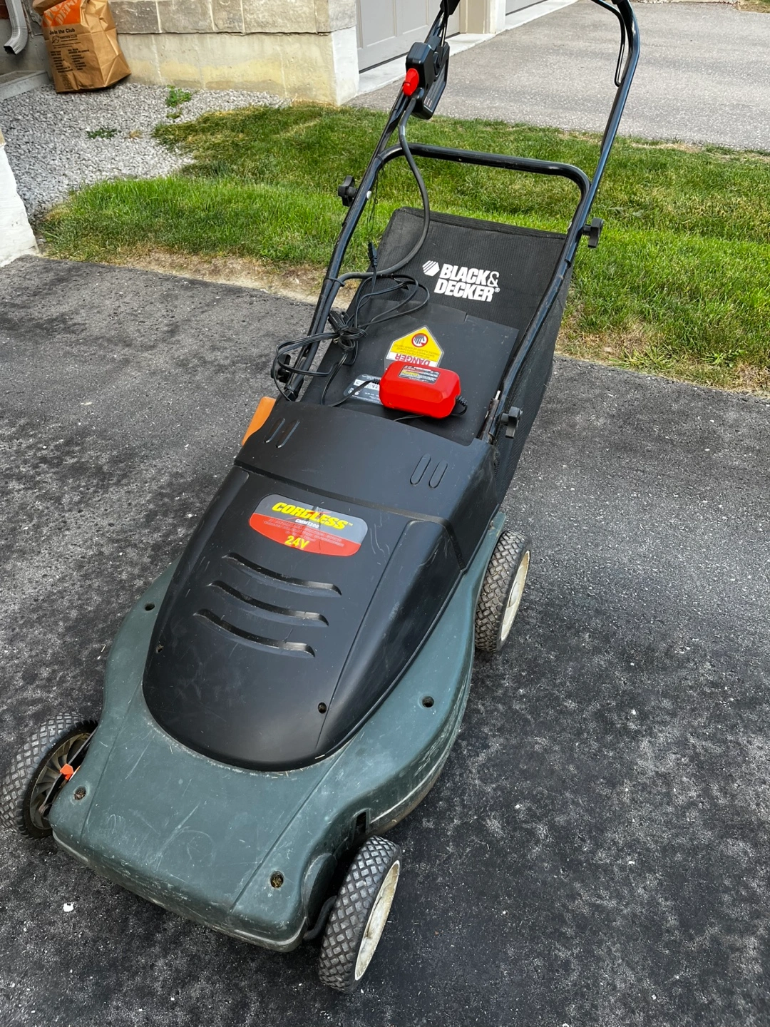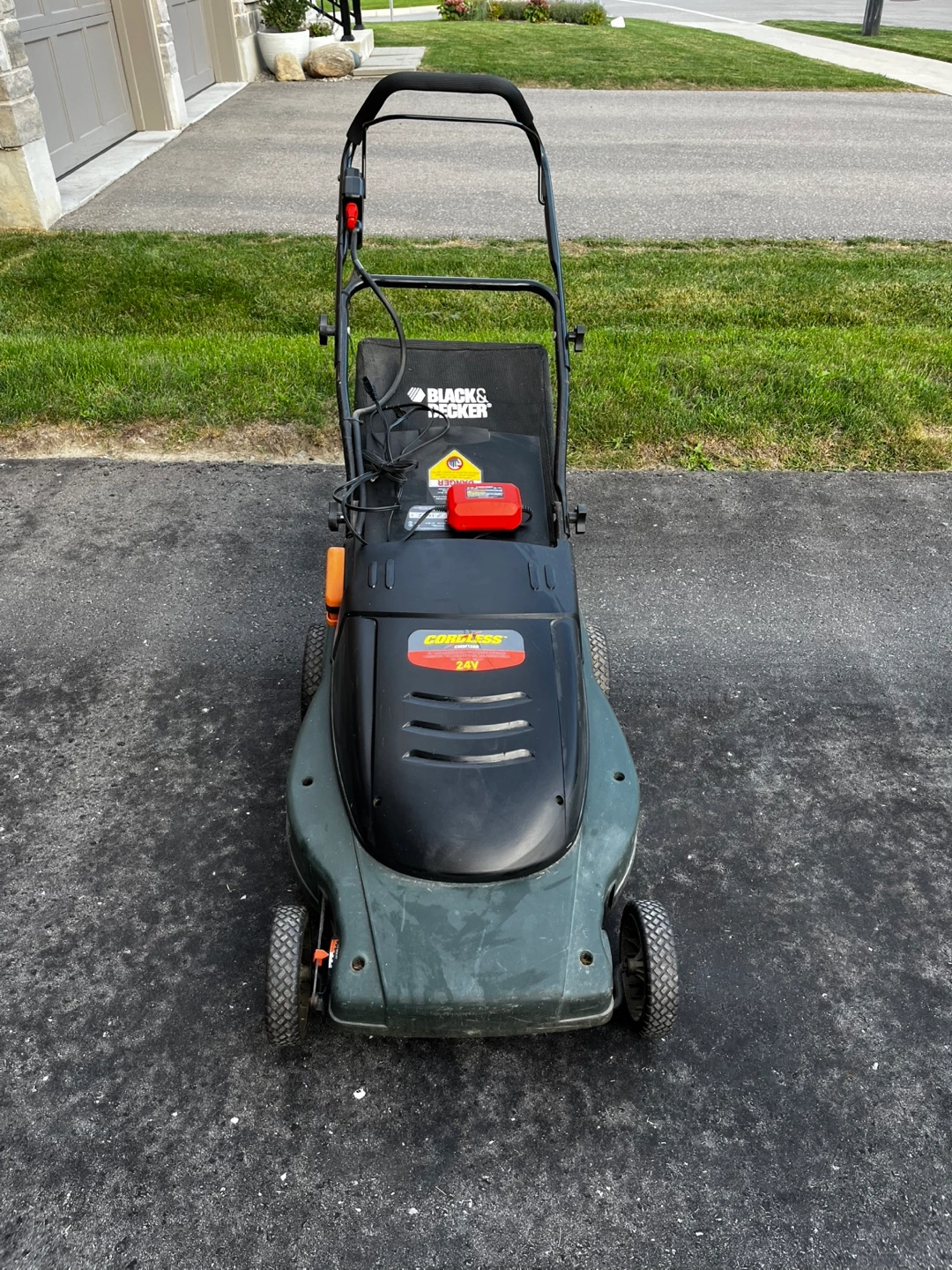 Selling a Black & Decker cordless 24V lawn mower! It's in good working condition and ready to help you keep your lawn looking great. Perfect for smaller yards or anyone looking for a lightweight and easy-to-use mower