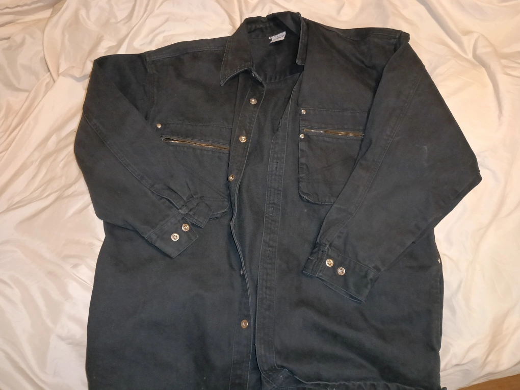 331Men's black denim jacket . Size XL. Multiple pockets with zippers. 100% cotton. Made in Hong Kong.