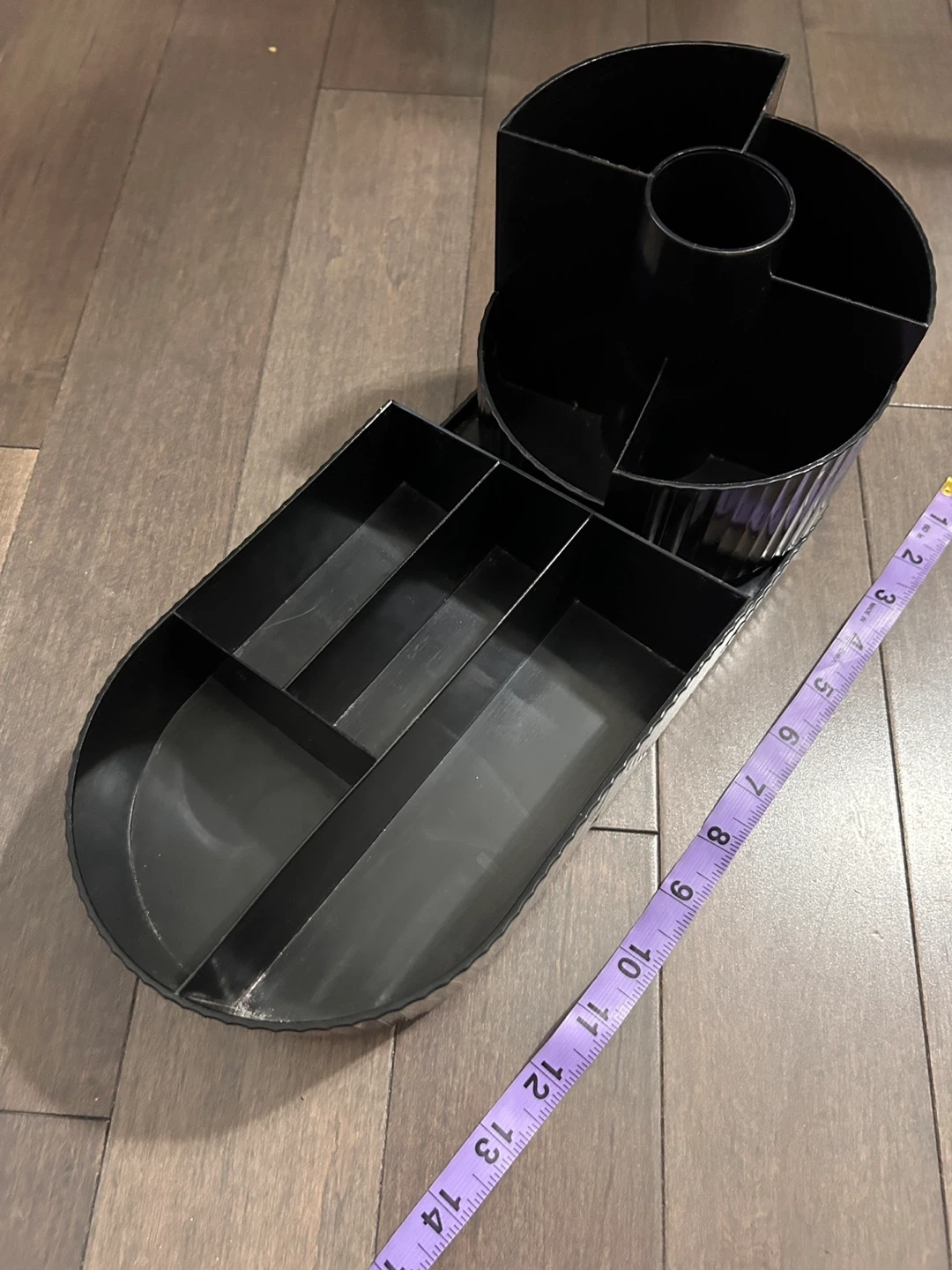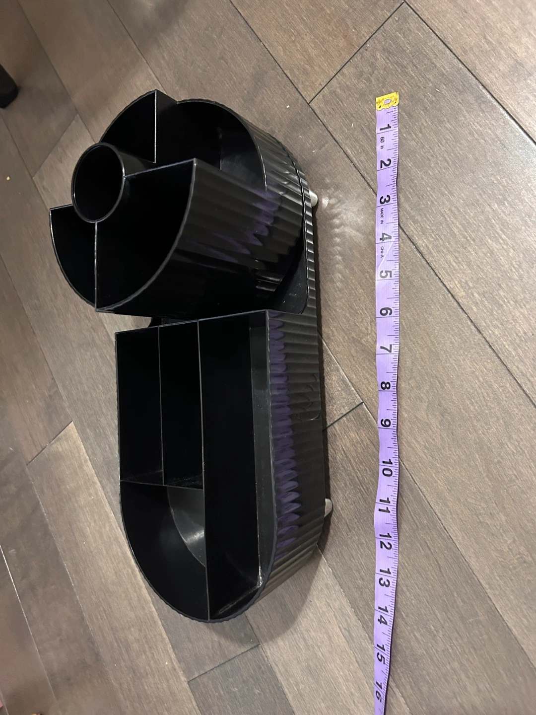 Selling a handy black desk organizer! It's perfect for keeping your workspace tidy and efficient. It has multiple compartments for pens, pencils, and other small items. It's in great condition and ready to help you get organized