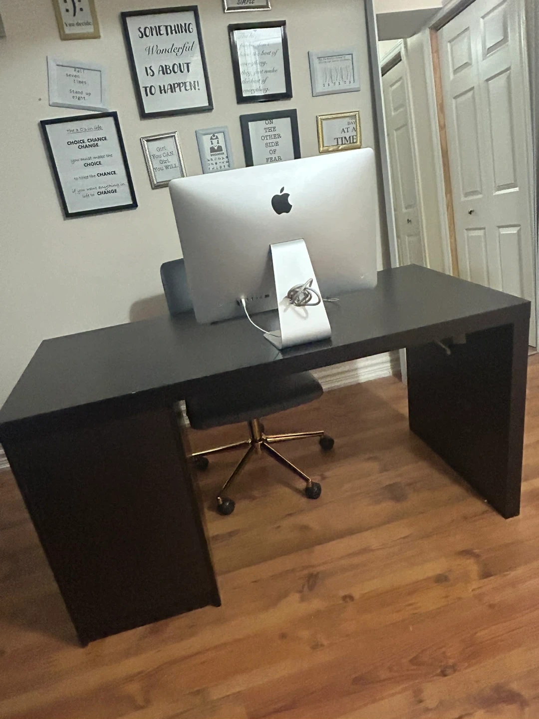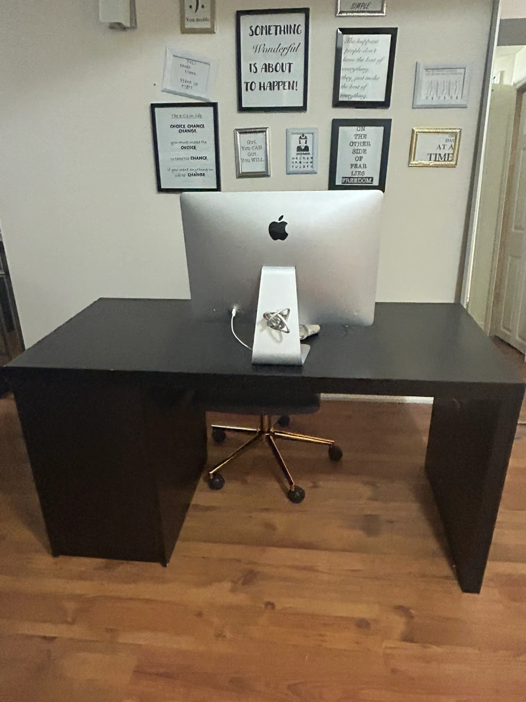 Selling a black desk in great condition! It has a sleek design with built-in drawers for storage. Perfect for a home office or study space! The desk is sturdy and has been well-maintained. Looking for a new home for it!