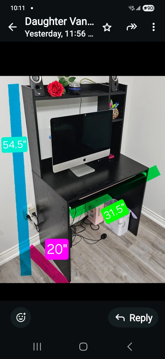 Selling a black desk with a hutch. The desk is 20" deep and 31.5" wide, while the hutch brings the total height to 54.5". It's a great setup for a home office or study space!