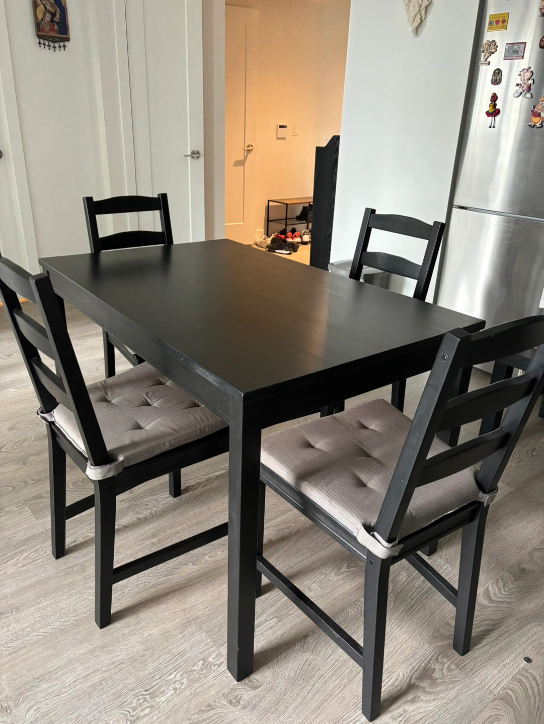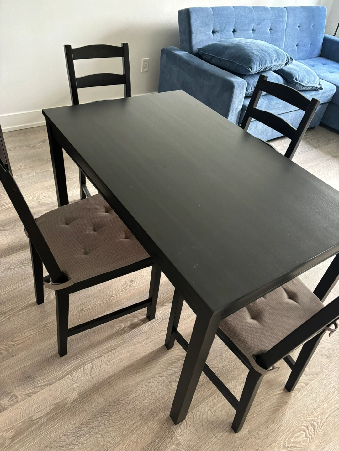 Dining Table Set - Dark Brown Table w/ 4 Chairs + 1 Bench