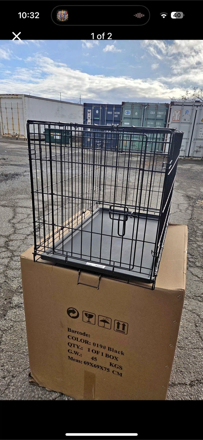 79Selling a brand new dog crate that's still in its box! It's black and measures 69x69x75 cm. Perfect for your furry friend!