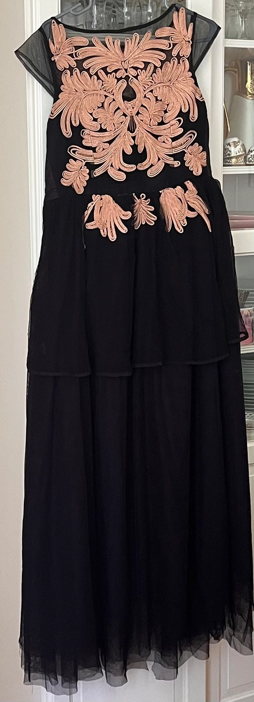 65A black elegant dress for weddings or events. The dress has hand embroidery design.