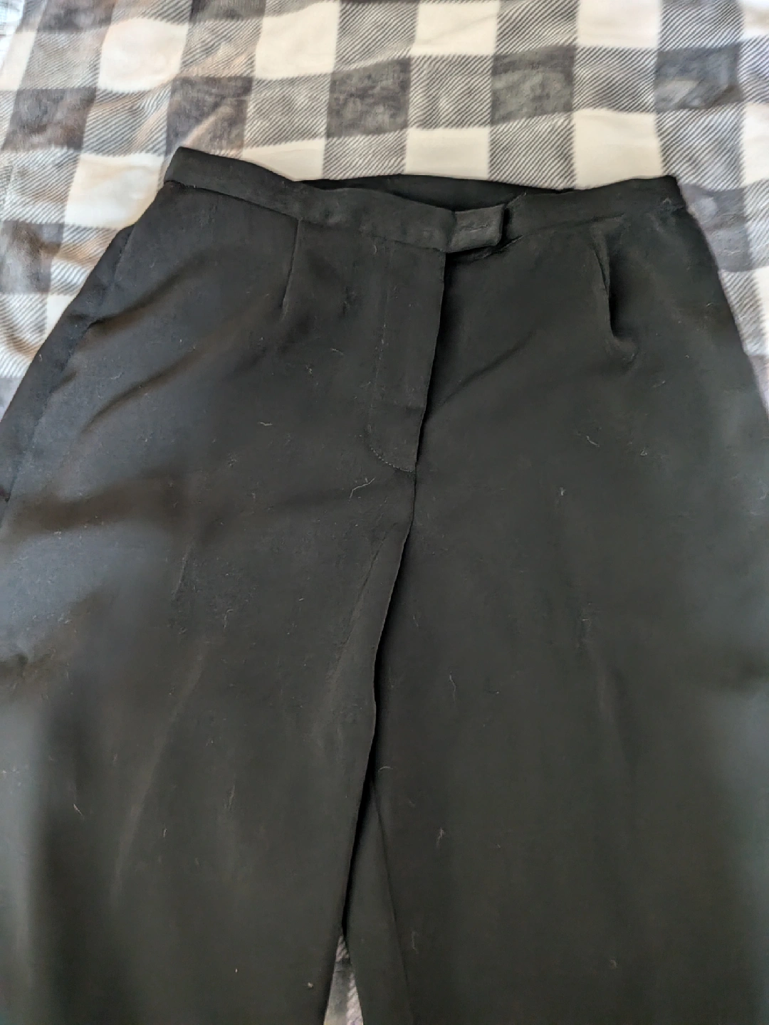 Selling a pair of black dress pants in size 12P. They are made of 100% polyester. please checkout my other listings FCFS cross posted pickup location Oxford and Wonderland