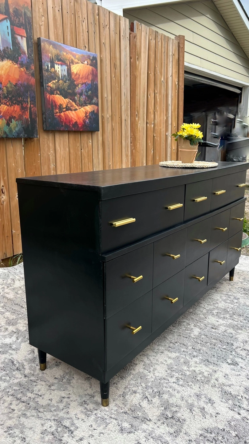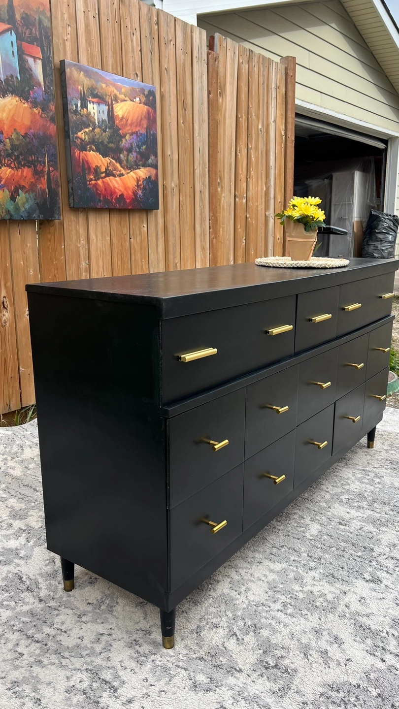 📋The chest of drawers, has been completely refinished, and handles replaced. The chest of drawers has 9 drawers. Everything was painted with high-quality paint using a special machine (sprayer) that covers and leaves a very smooth surface 🎨color: black 📍Pick-up location: Pinemill way ne or Royal Oak NW 🚚We also deliver for an additional fee within Calgary and beyond.