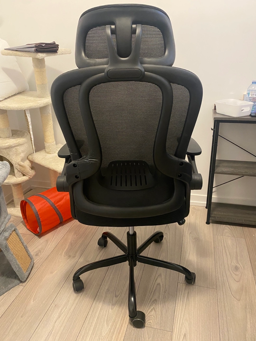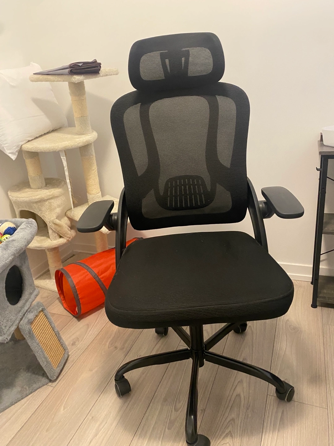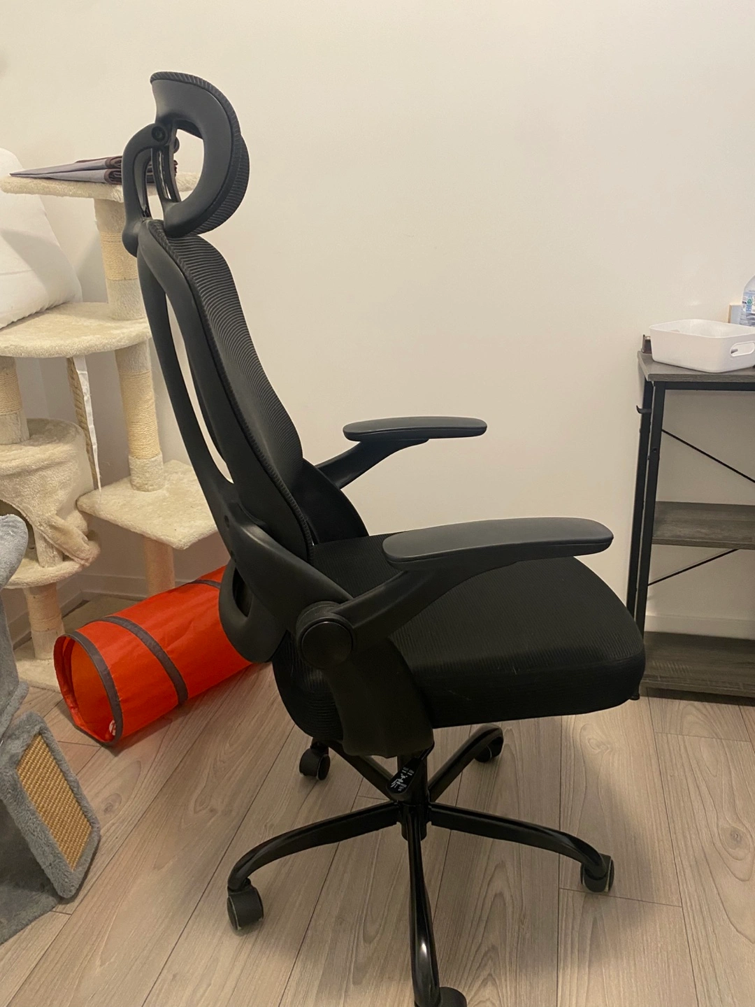 Selling a comfortable black ergonomic office chair. It features a mesh back for breathability and adjustable armrests. The chair is in great condition and perfect for working from home or gaming. Originally bought for $169.99 asking for $150 or the best offer