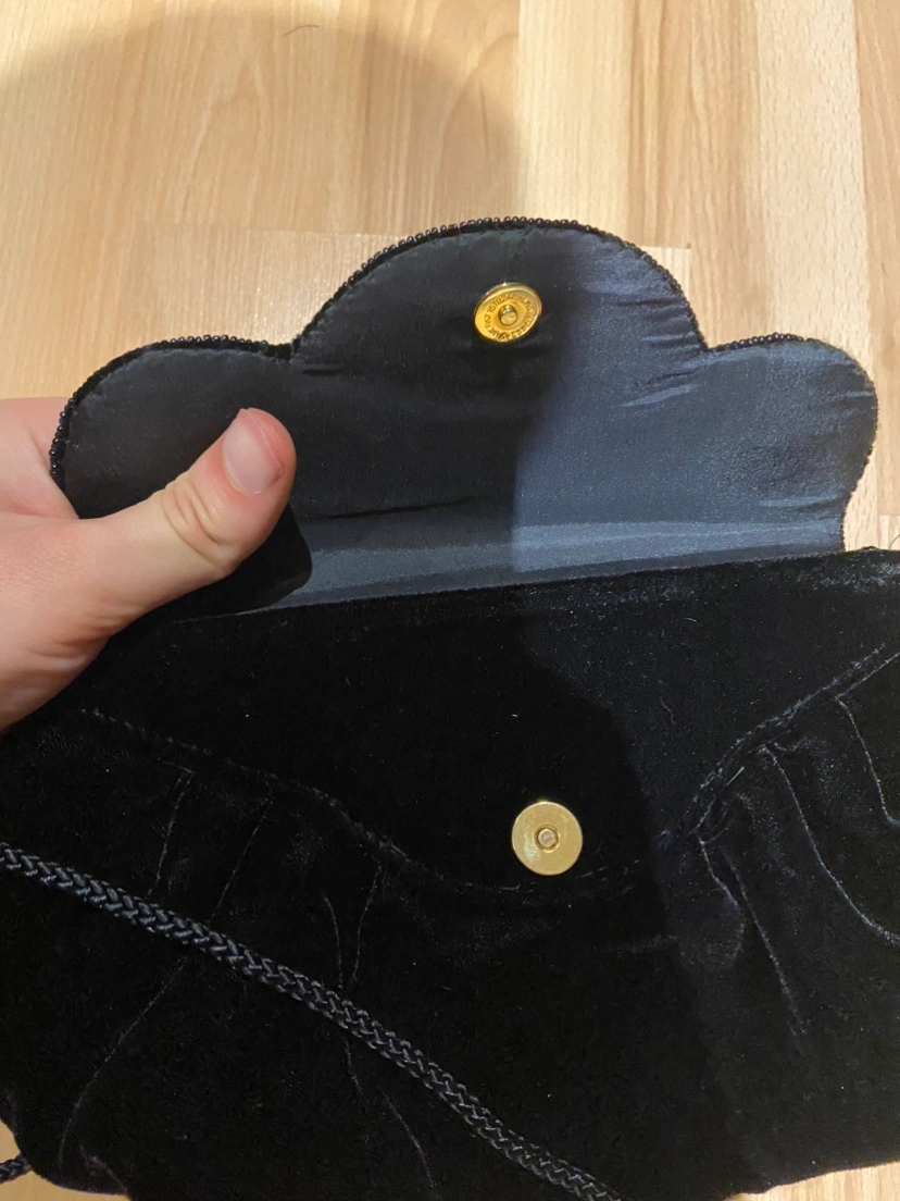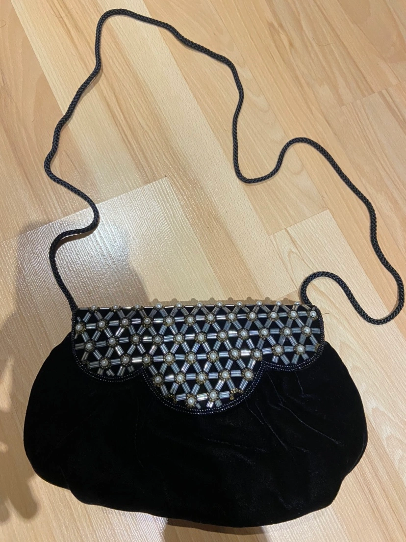 99Black evening small purse with a beaded design and long strap. Comes with mirror Major intersections are burnhamthorpe and confederation parkway Mississauga