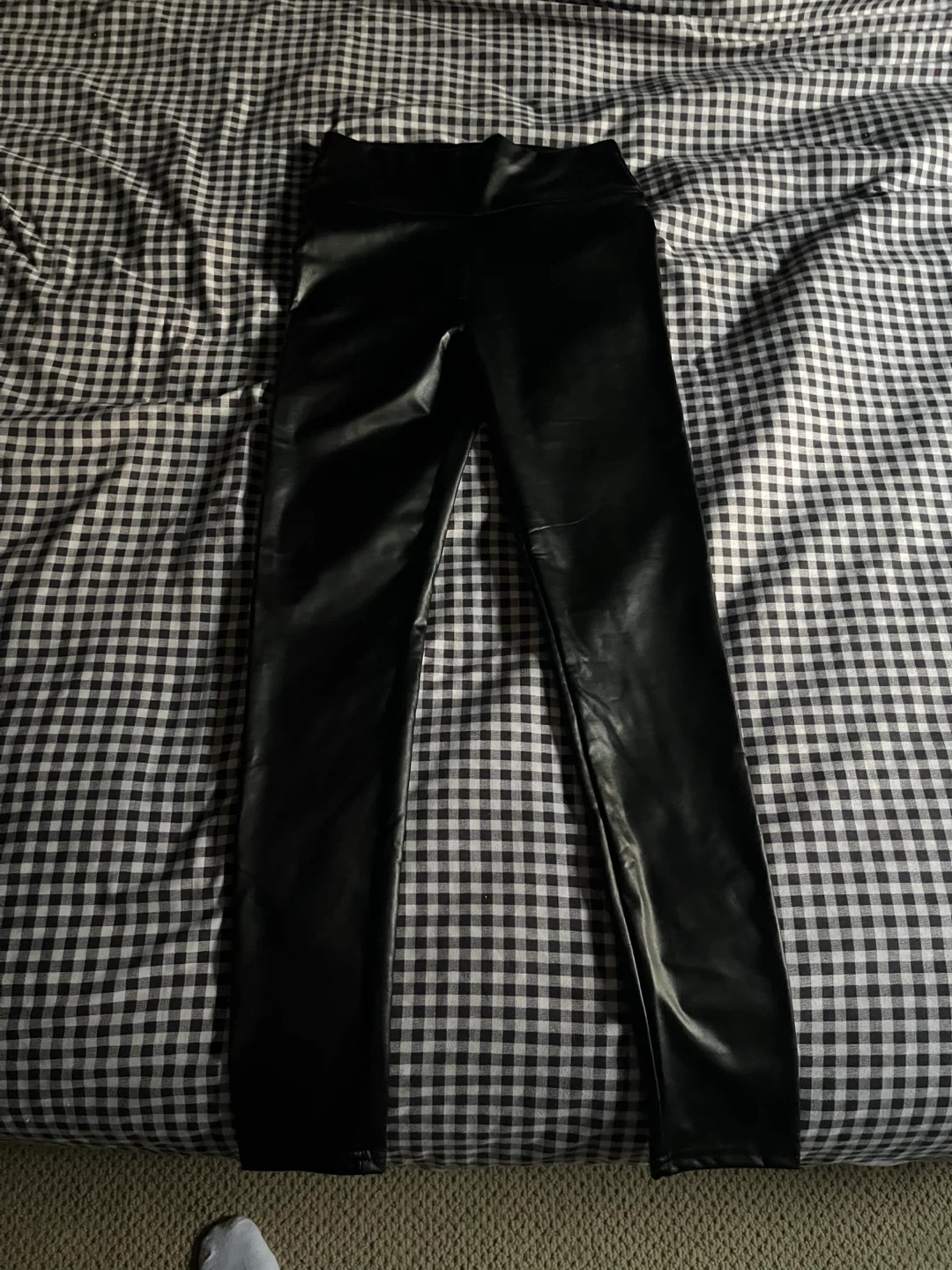 Selling a pair of black faux leather leggings. They're in great condition and would be a stylish addition to your wardrobe!