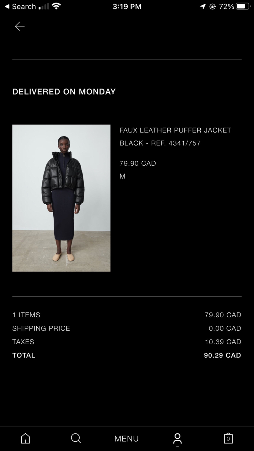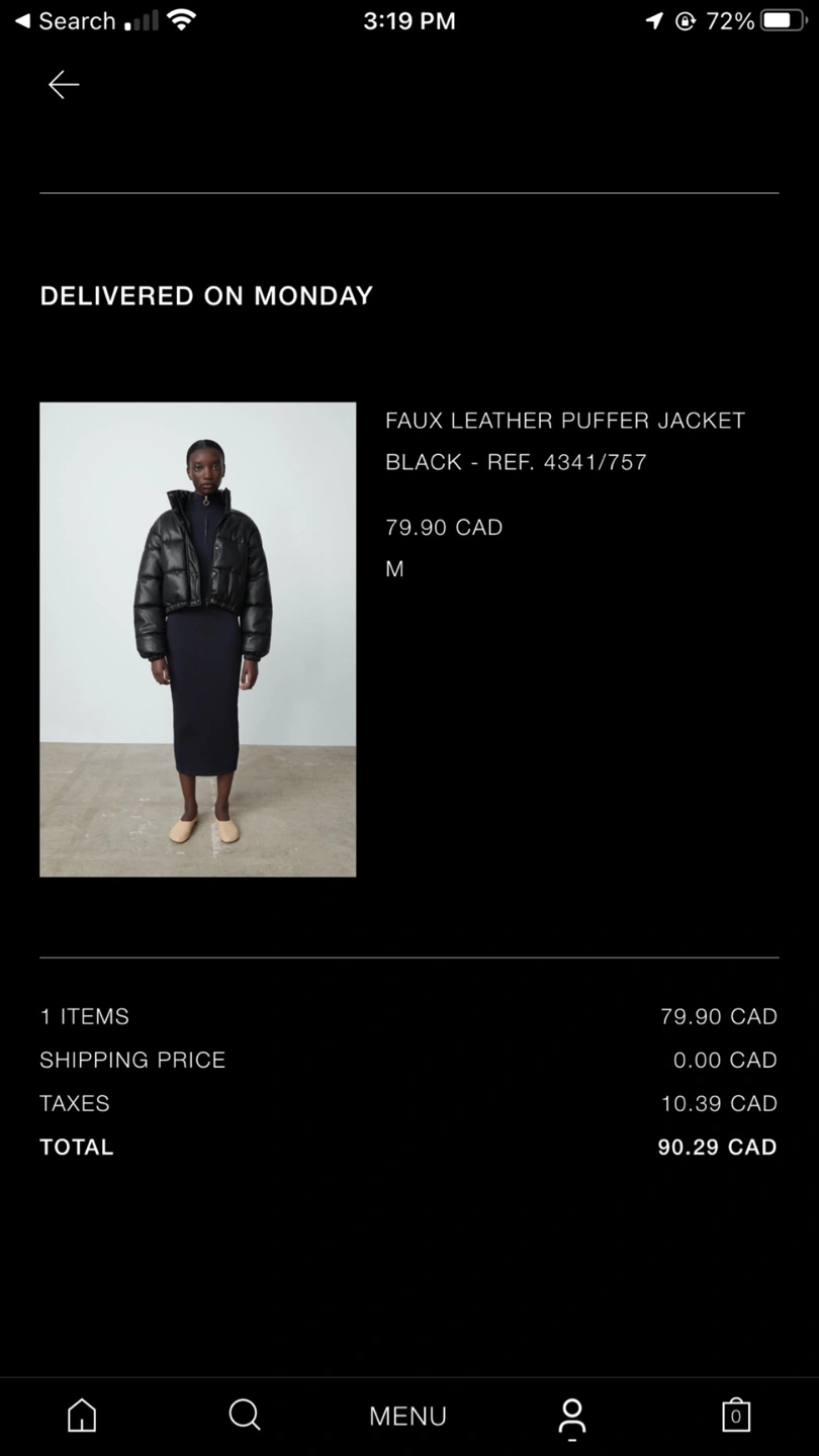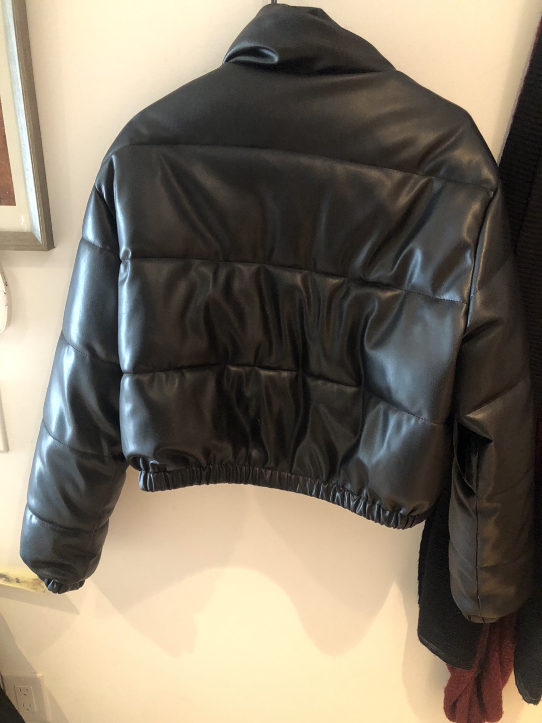 75Size Medium. Faux leather puffer crop jacket - 20-21 inch crop. Gently used with a slight scratch on the back. Comfy and super flattering. Warm enough when layered with a sweater. I removed the tags due to scratching but this is from Zara size medium.