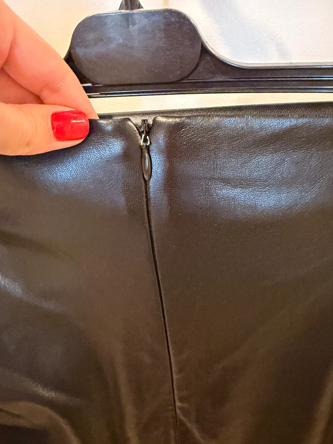 65Selling a stylish black faux leather skirt! It features a ruched design on one side, adding a touch of elegance. The material looks and feels great, perfect for dressing up or down. It's in excellent condition and ready for a new home