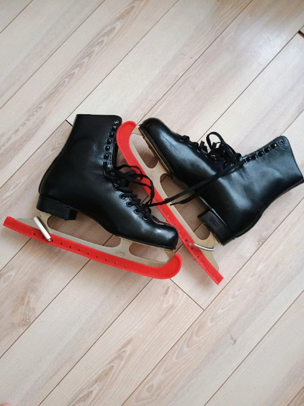Vintage Bauer Black leather figure skates. Solid size women's 10, men's 7.5. Condition: Used - Good. Let me know if you're interested!