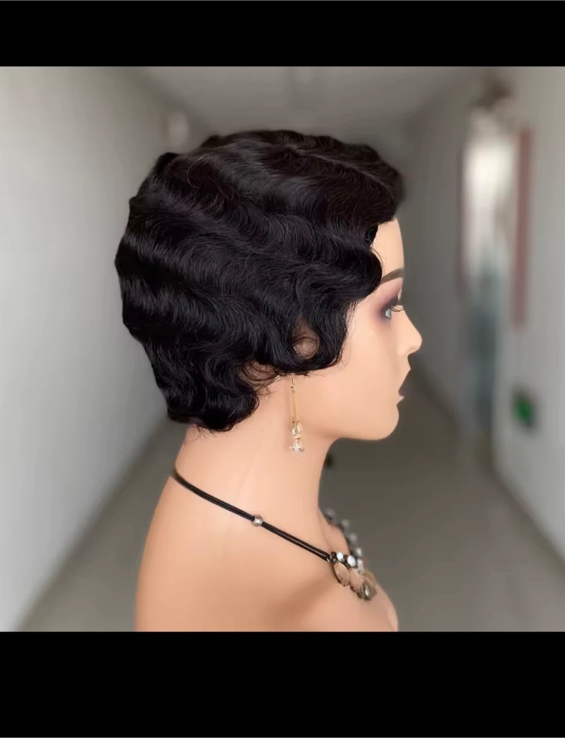 10Selling a stylish black finger wave wig! It's in great condition and ready to wear. Perfect for adding a touch of vintage glamour to your look
