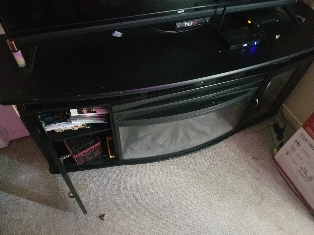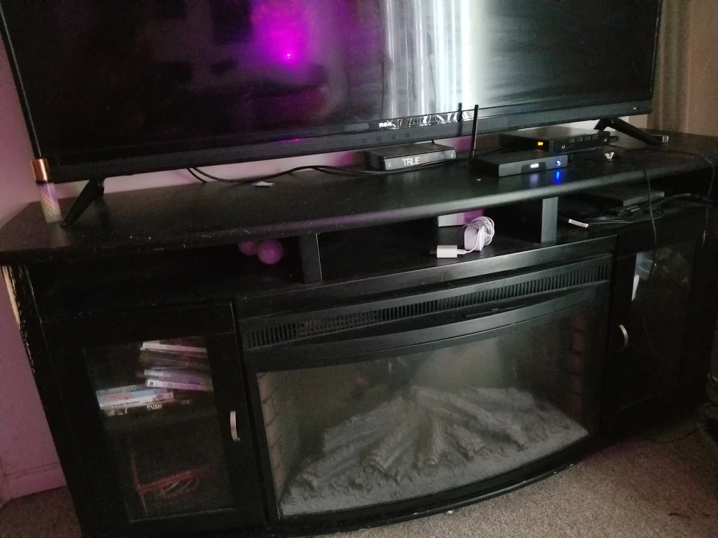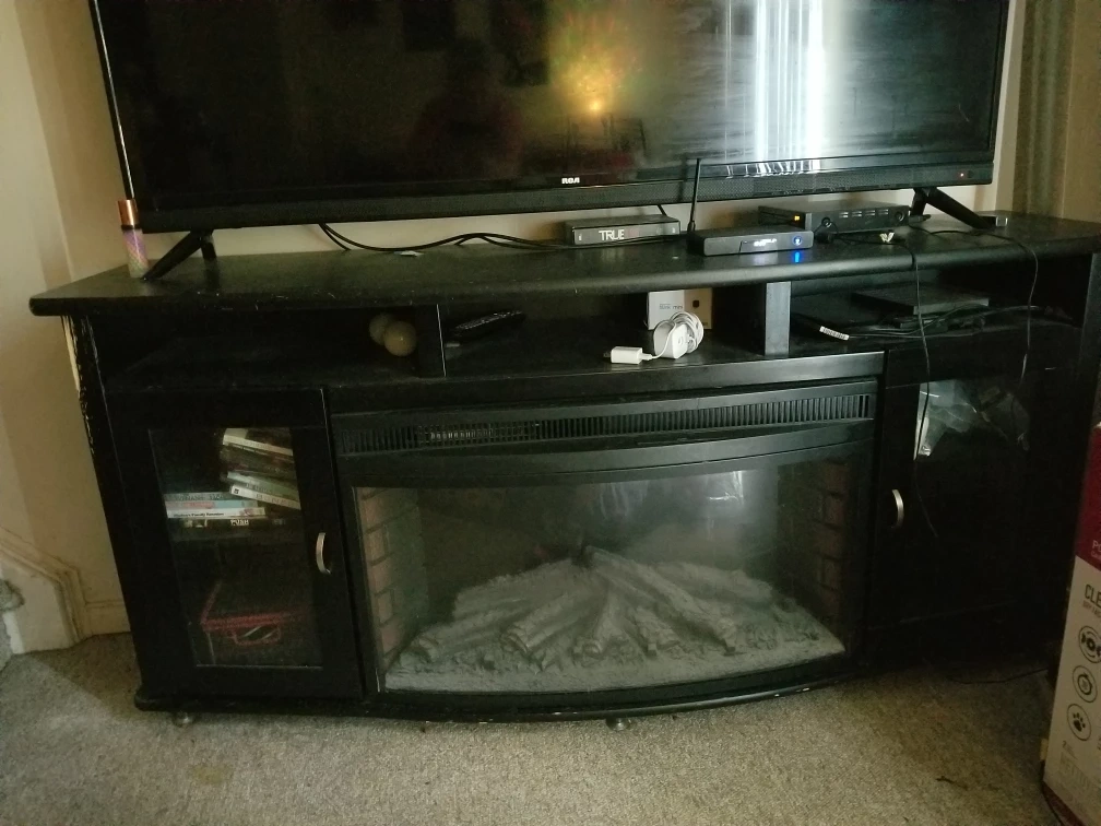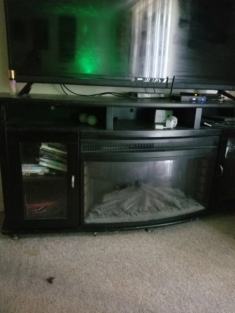I am trying to sell my fireplace it does not work anymore but it is a Muskoka I paid $2,000 for it two years ago it's very easy to replace the center part you just have to buy one that measures it but it's too big for my living room it's in excellent condition has lots of storage and I was also told that the fireplace still possibly is working it just has to have the plug changed or rewired through the plug but I was going to sell it for $100 but I'm selling it for $60 I need to get it out of my home it's too big I'm looking for a fireplace which is a corner unit I only need a fireplace that's only 55 in Long this fireplace is like over it's it's 6 ft long it's just huge but it's very solid looking for serious people that are looking for it like I said if you don't even want to use the fireplace in the middle you can always take that out and put shelving in there or anything but it still looks good I just need more room in my living room.