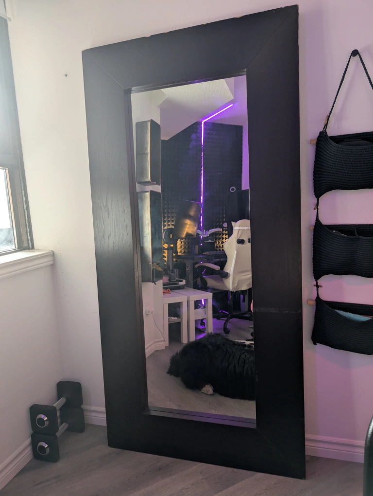 88Selling a large, black-framed mirror. It's in great shape and would look great in any room. The frame is a simple, modern design that would fit with most decor styles