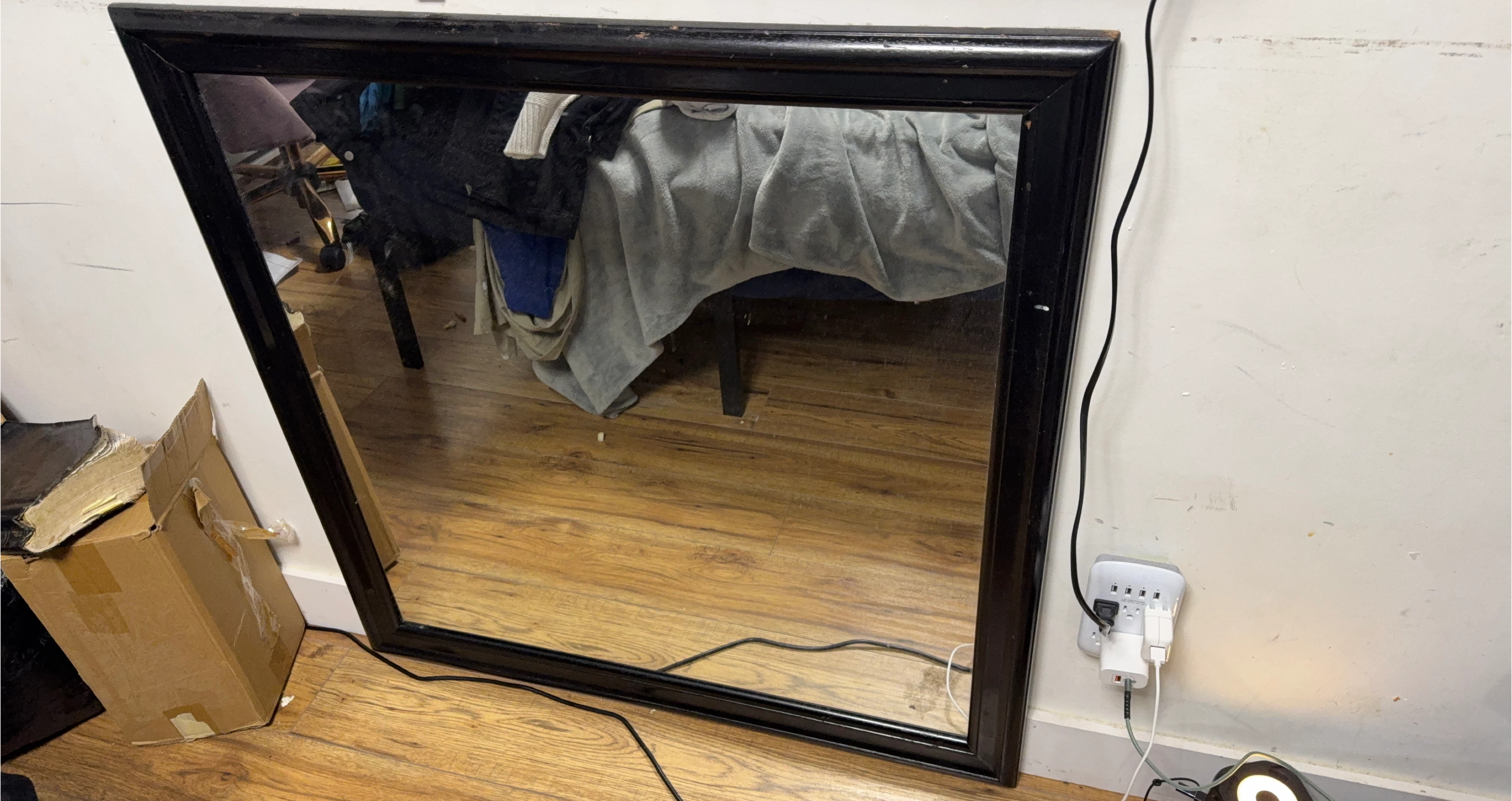 147Selling a wall mirror with a black frame. It's in good condition and ready to hang in your home! **does not include any mounting hardware**