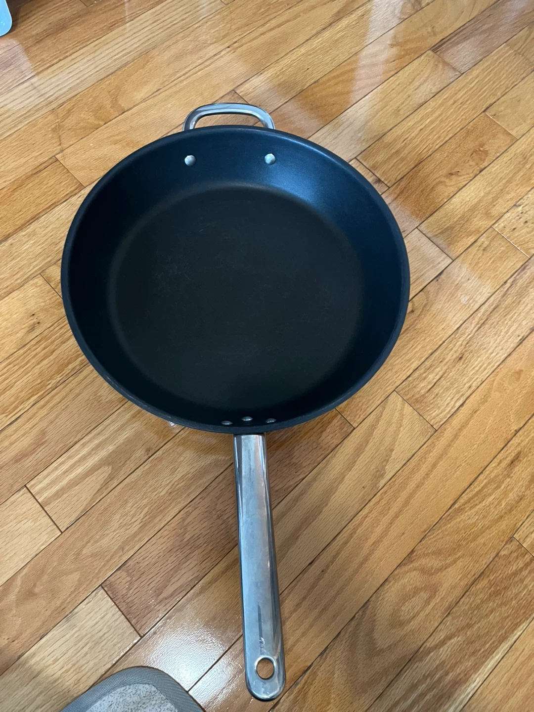 Selling a frying pan with a silver handle. It's in great condition and ready for your next culinary adventure!