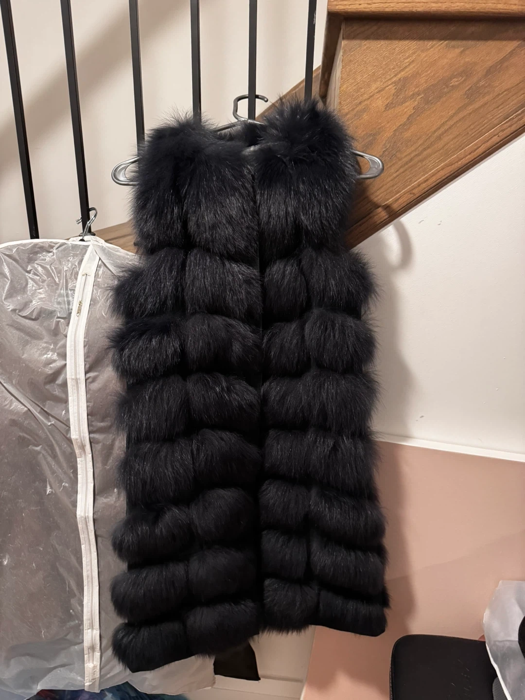 Selling a stylish black fur vest. It's in great condition (never worn) and would be a lovely addition to your wardrobe for those cooler days