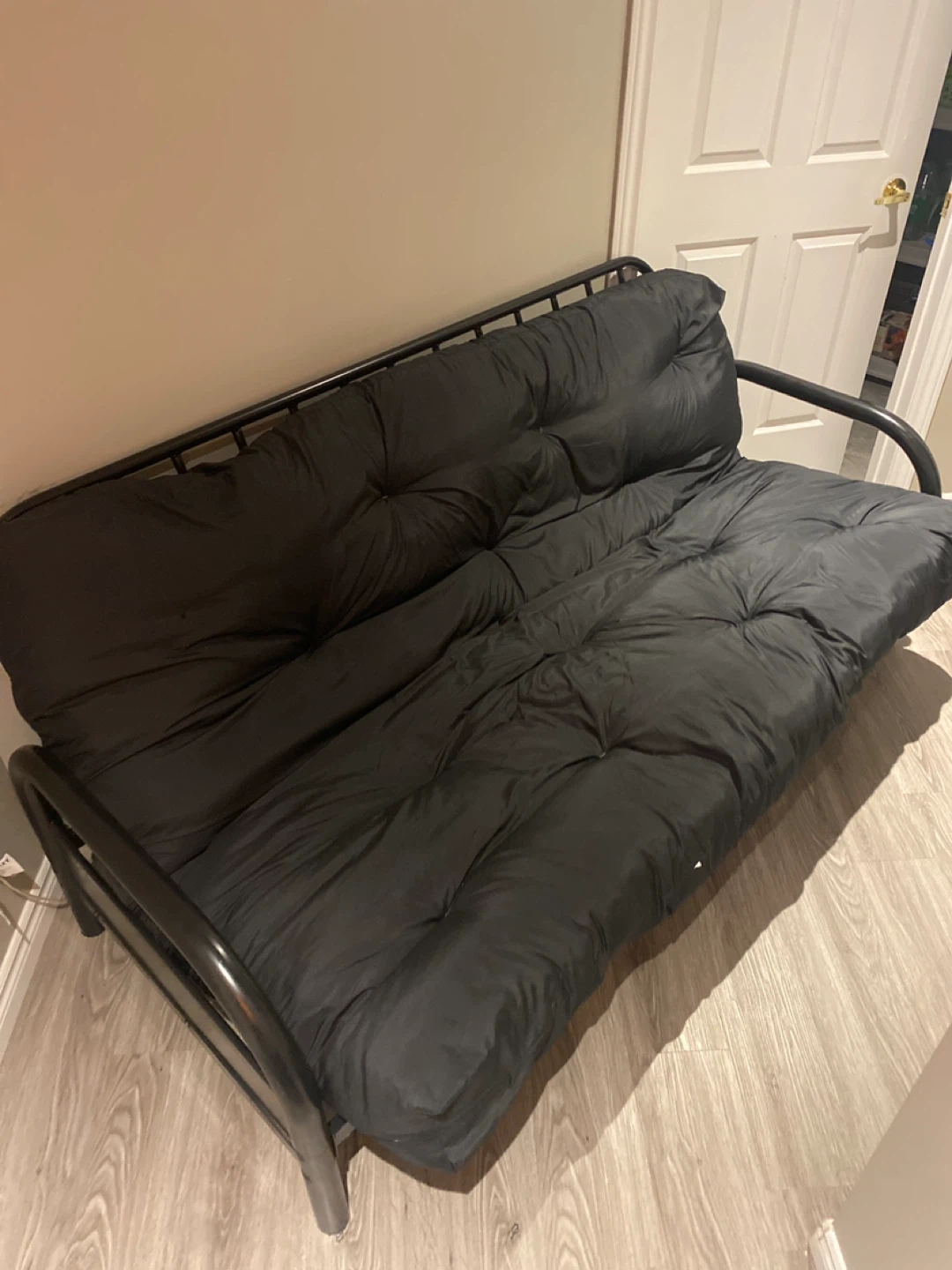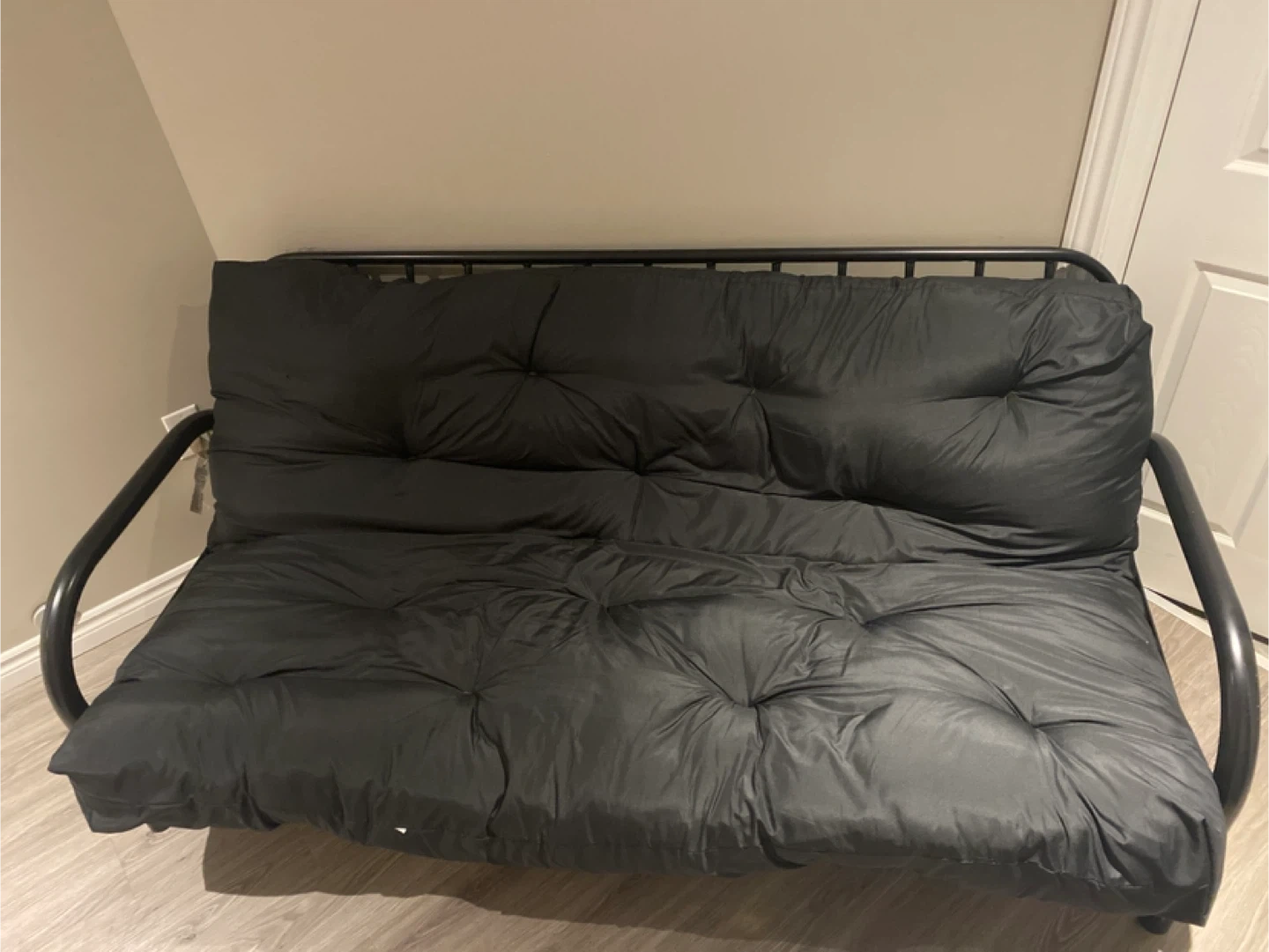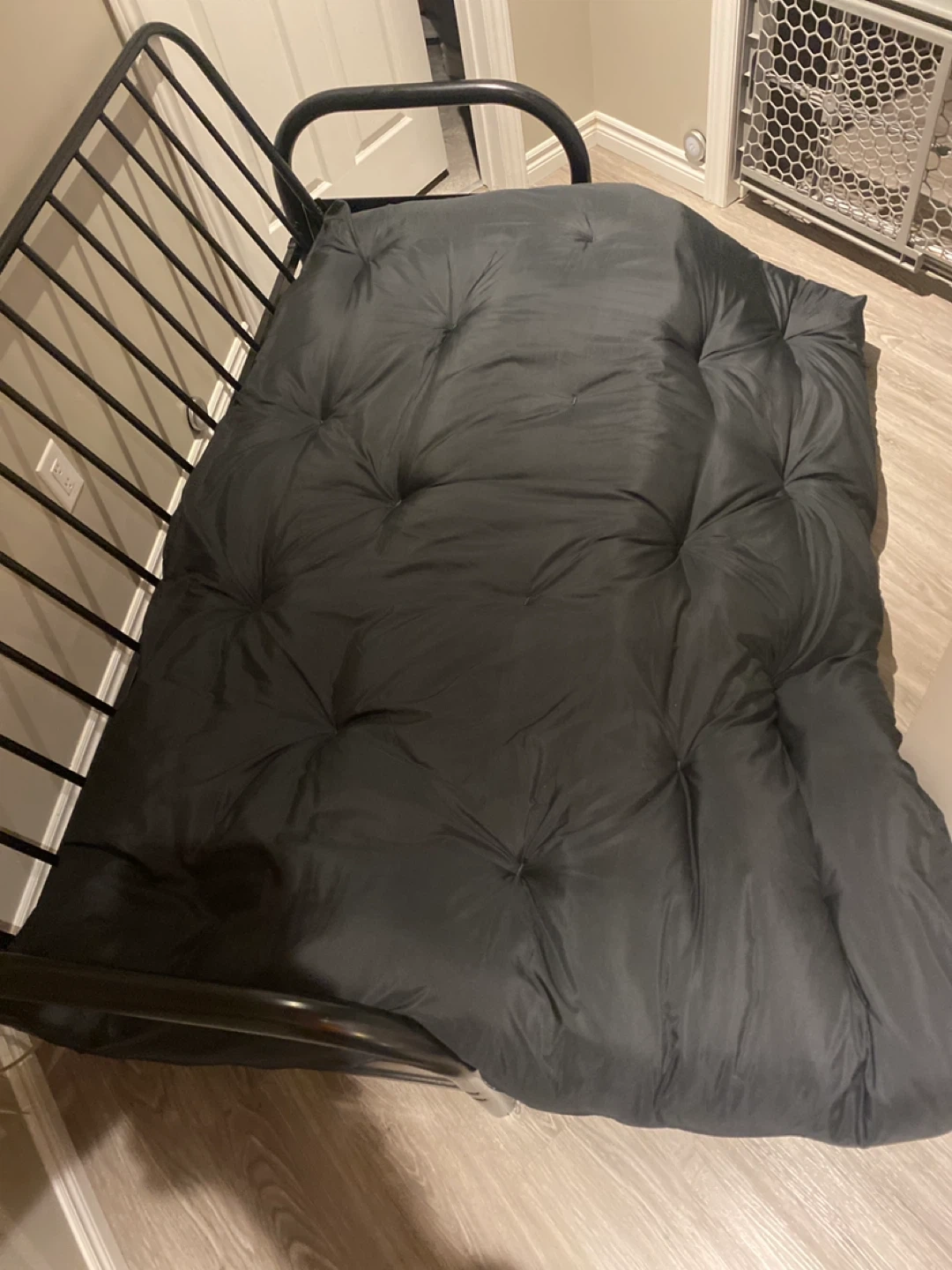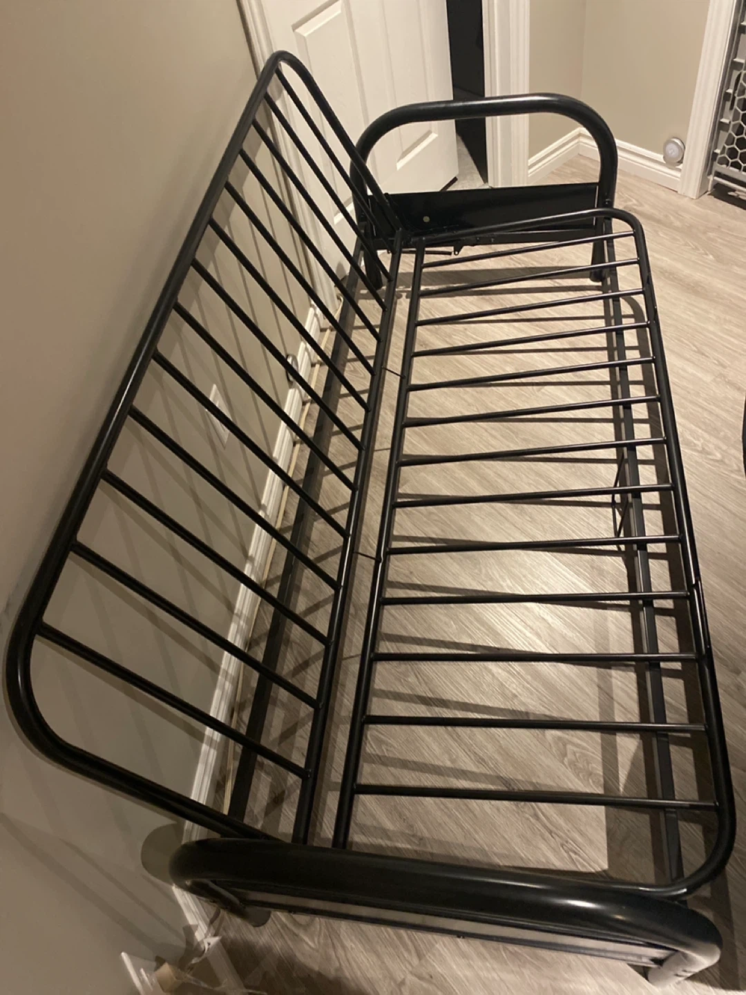 Black Metal Bed Frame - Twin Size with an orthopedic mattress