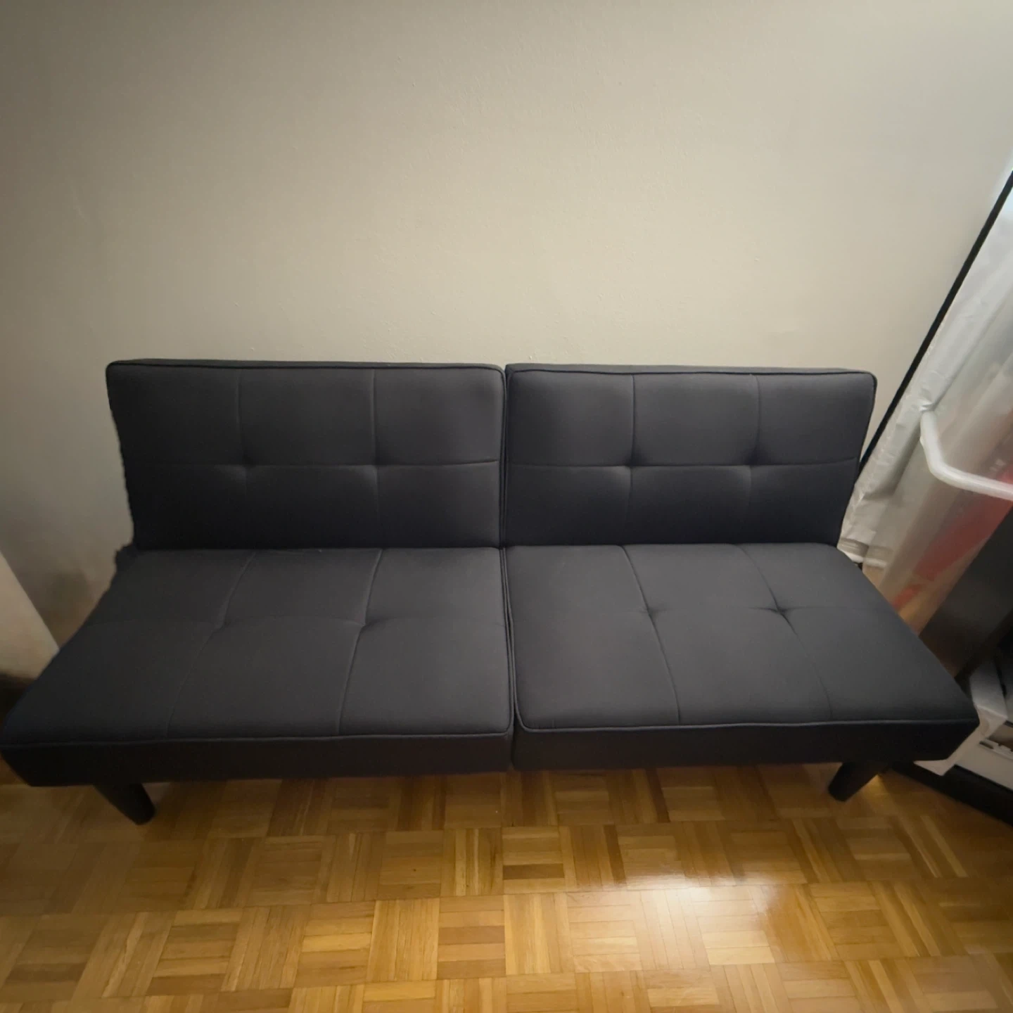 Selling a black futon sofa bed. It's in great condition and ready for a new home! The dimensions are approximately 169 cm in length and 98 cm in width. Each seat cushion is about 43-46 cm wide. Never really used as a bed- was just in spare room! Negotiable!