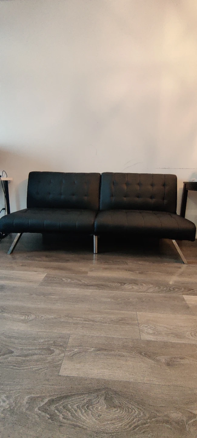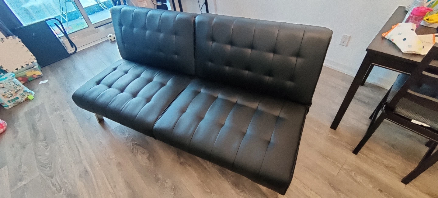 25Selling a black futon sofa bed. It can be used as a sofa or folded down into a bed. Perfect for a small space or guest room! Available for pickup only . In good condition. Please contact +1 647 657 5546 if interested.
