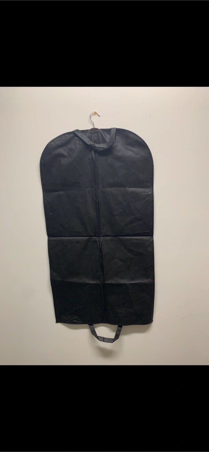 5Selling a black garment bag in great condition! It's perfect for storing and transporting your clothes while keeping them protected from dust and wrinkles. It has a zipper for easy access and handles for carrying 600 nylon ones. (No handles)200 nonwoven ones (with handles). $1.00 each or 6for $5,00 or 14 for $10 or can negotiate… left over from trade shoe brand new in boxes