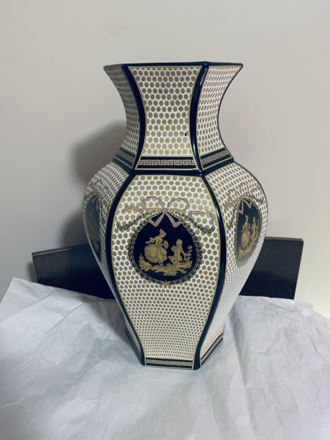 734Warm white, black interior, gold design Used as decor Note chip on the bottom. Does not interfere with function. Cash preferred or etransfer accepted from verified users Porch pick locations: Markham - Markham Rd & 16th Ave Oshawa - Wilson Rd & Adelaide Ave Pls feel free to ask me any questions