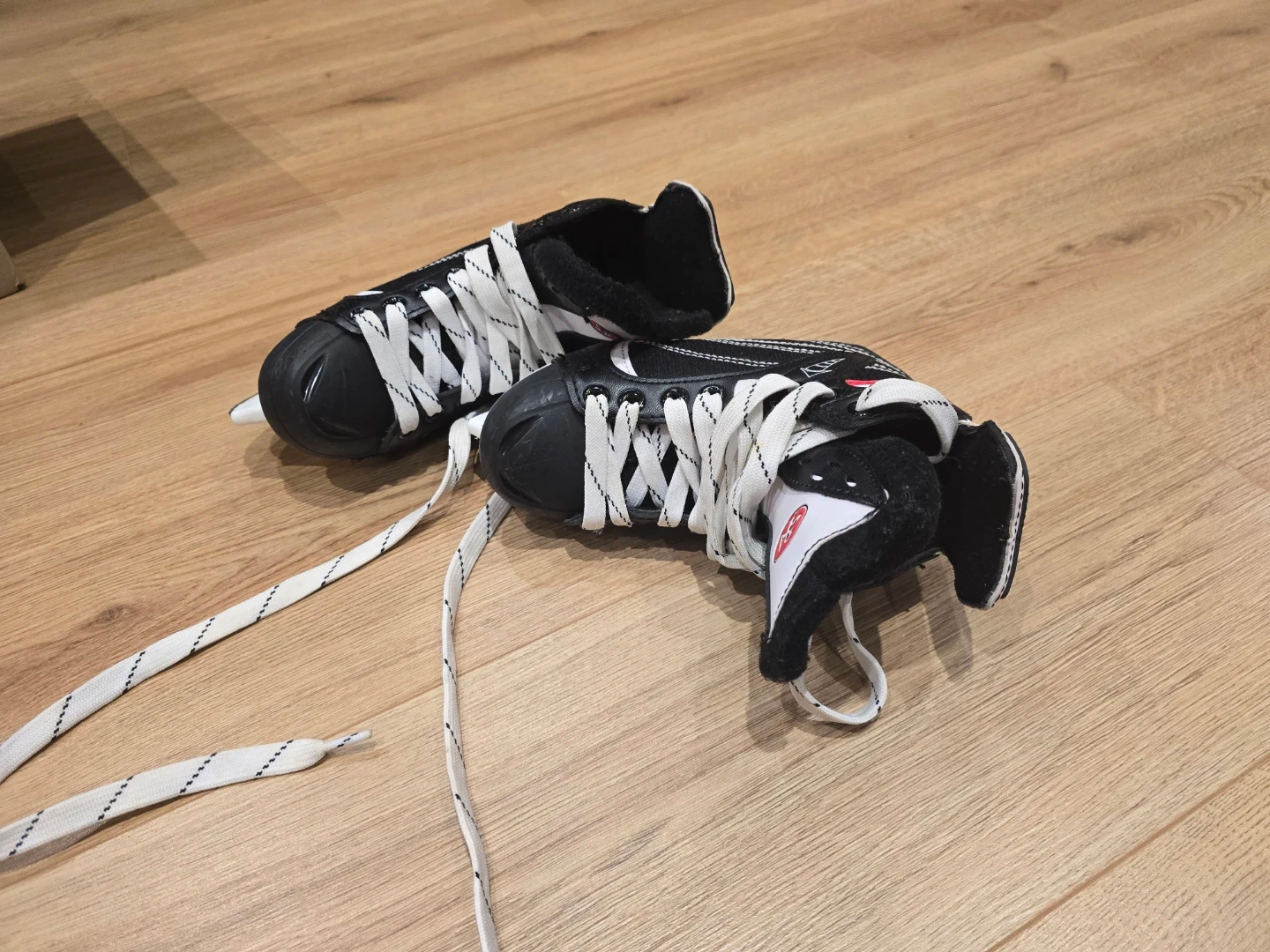 10Selling a pair of black hockey skates. They are in good condition and ready for the rink!