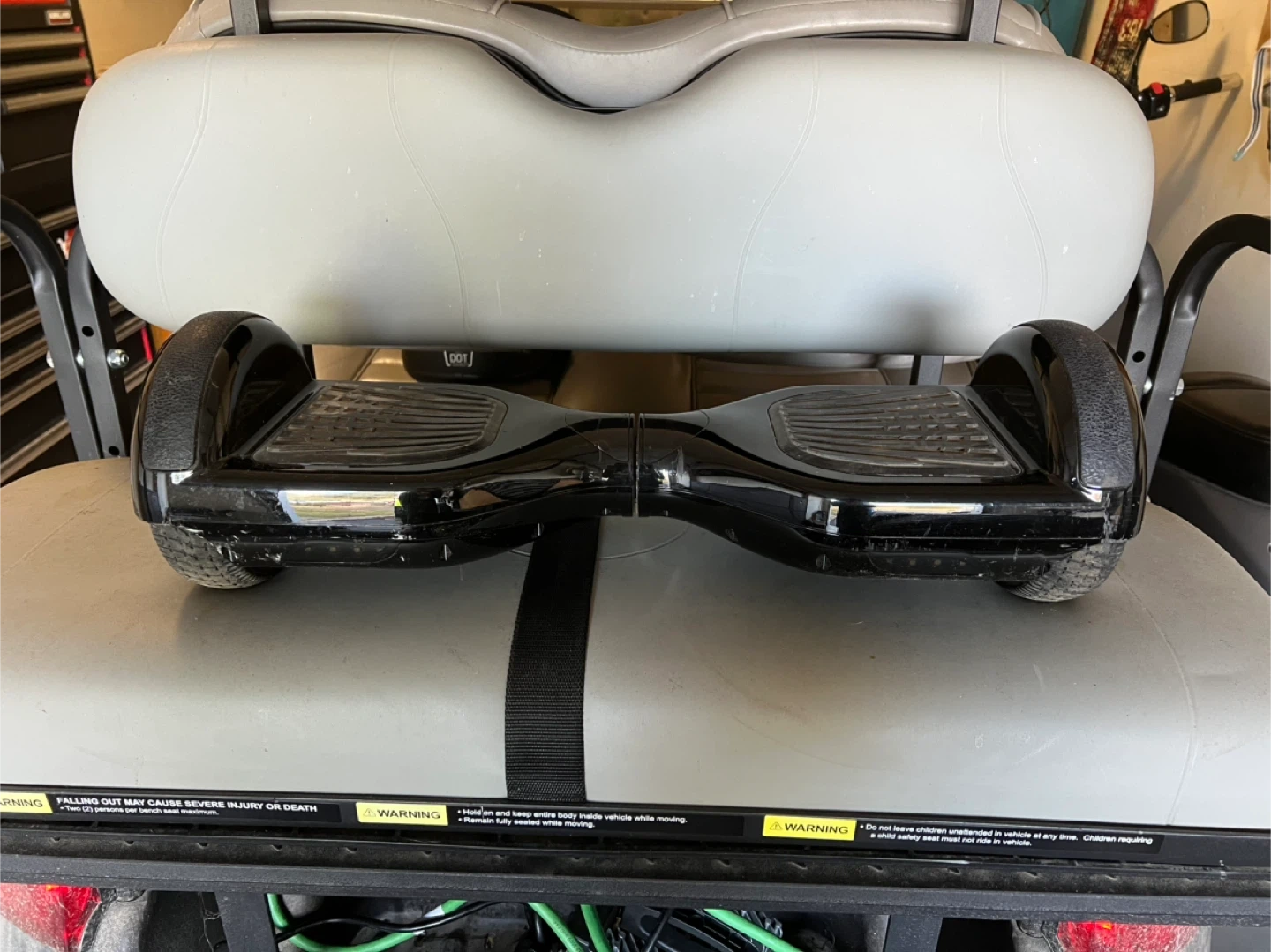 Selling a used black hoverboard. It's a self-balancing scooter that's perfect for getting around! It does have some signs of wear and tear, but is still fully functional.