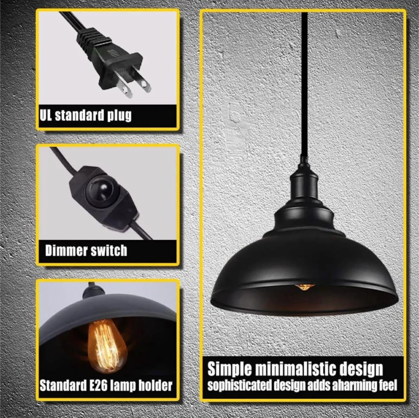 318Selling a black industrial pendant light. It's brand new and still in its packaging. The shade measures approximately 11 inches in diameter. It features a dimmer switch and a standard E26 lamp holder. Simple minimalist design that adds a charming feel to any room!