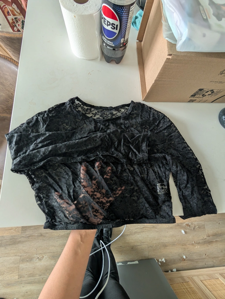 BRAND NEW, NEVER WORN black lace long sleeve crop top. It's in great condition and perfect for layering! The lace detail is really pretty and adds a nice touch to any outfit. It's lightweight and comfortable to wear, too